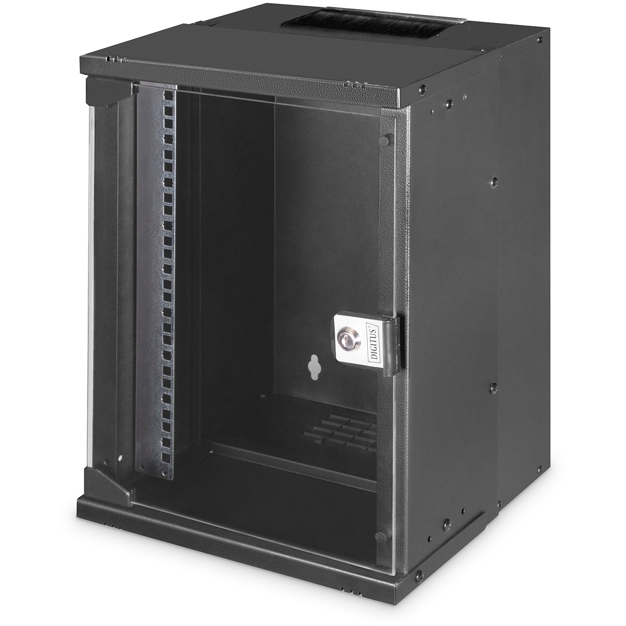 Ob Privatbereich, Büro oder bei Unterverteilungen mit geringen Platzverhältnissen: Mit den kompakten 254 mm (10“)-Lösungen der SOHO Pro Serie installieren Sie ihr Netzwerk, wo sie es möchten. Die in drei Höheneinheiten (6HE, 9HE, 12HE) erhältlichen Wandgehäuse sind ausgestattet mit einer Vollglastür sowie einer Kabeleinführung im Dach und Boden. Ein Paar galvanisierte, mit ablesbaren Höheneinheiten beschriftete 254 mm (10")-Profilschienen sind im Inneren verbaut. Diese lassen sich in der Tiefe verstellen. Jeder Schrank ist eine robuste Stahlkonstruktion aus bis zu 1,5 mm starkem Stahlblech. Die Farbgebung erfolgt in Form von elektrostatischer Pulverbeschichtung in den Standardfarben Grau (RAL 7035) und Schwarz (RAL 9005). Ein Türanschlagswechsel kann vorgenommen werden. Geliefert werden die Netzwerkschränke unmontiert, im optimierten Flatpack. Die Montage erfolgt in wenigen Schritten und ist dank beiliegender Schritt-für-Schritt Anleitung kinderleicht.