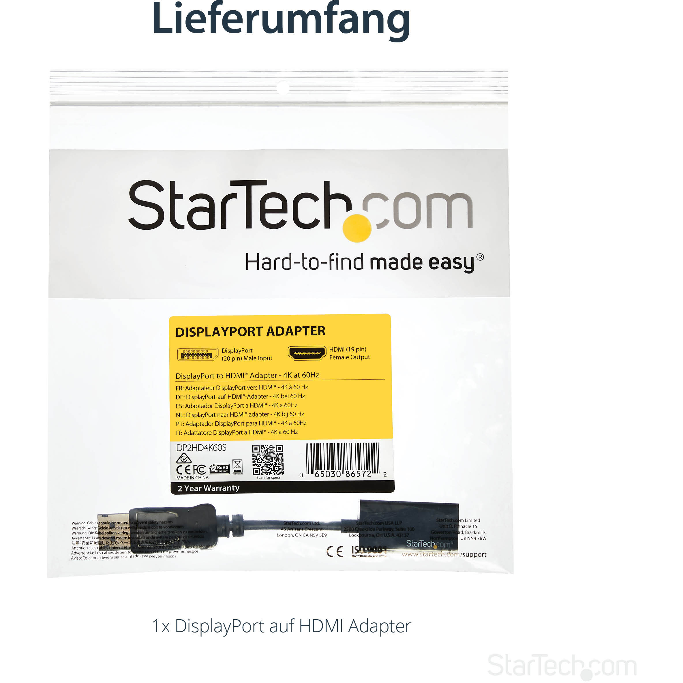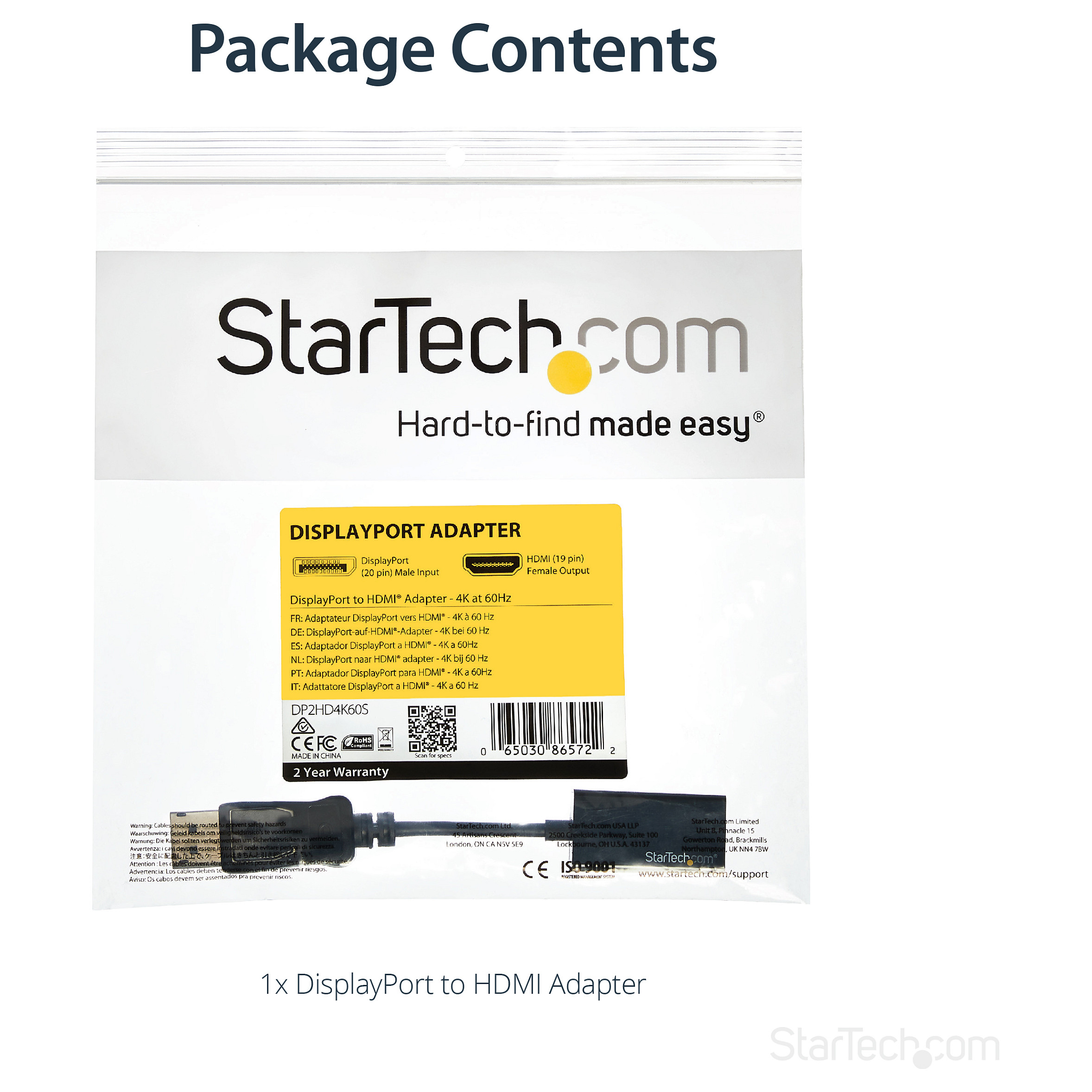 Mit diesem DisplayPort zu HDMI® Adapter geben Sie HDMI -Video und -Audio von einem DP- Gerät aus, mit Unterstützung für Ultra HD 4K bei 60 Hz.