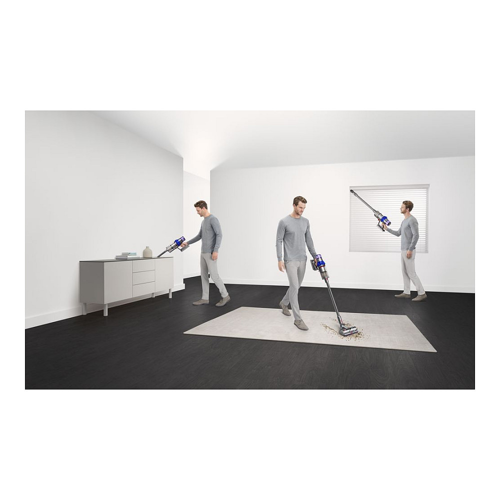 Dyson V15 Detect Fluffy. Produkttyp: 2-in-1-Stabstaubsauger, Staubbehälter Typ: Beutellos, Produktfarbe: Blau, Nickel. Reinigungsart: Trocken, Schmutztrennungsmethode: Zyklonal, Reinigen der Oberflächen: Harter Boden. Energiequelle: Akku, Laufzeit: 60 min, Ladezeit: 4,5 h. Breite: 250 mm, Tiefe: 266 mm, Höhe: 1205 mm. Staubsaugerbürsten enthalten: Mini-Motorbürste, Weiche Mini-Staubbürste, Motorbetriebene Bürsten, Multifunktionsbürste