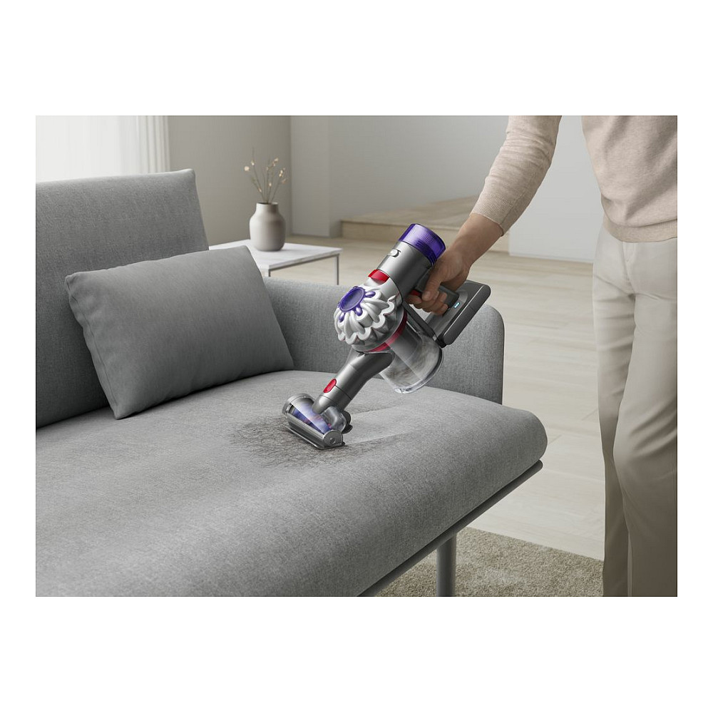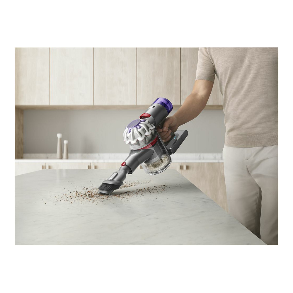 Dyson V8 Advanced. Produkttyp: 2-in-1-Stabstaubsauger, Staubbehälter Typ: Beutellos, Produktfarbe: Nickel, Silber. Reinigungsart: Trocken, Schmutztrennungsmethode: Zyklonal, Reinigen der Oberflächen: Teppich, Harter Boden, Holzboden. Energiequelle: Akku, Motorleistung: 425 W, Laufzeit: 40 min. Verpackungsbreite: 271 mm, Verpackungstiefe: 739 mm, Verpackungshöhe: 154 mm. Breite: 250 mm, Tiefe: 221 mm, Höhe: 1256 mm