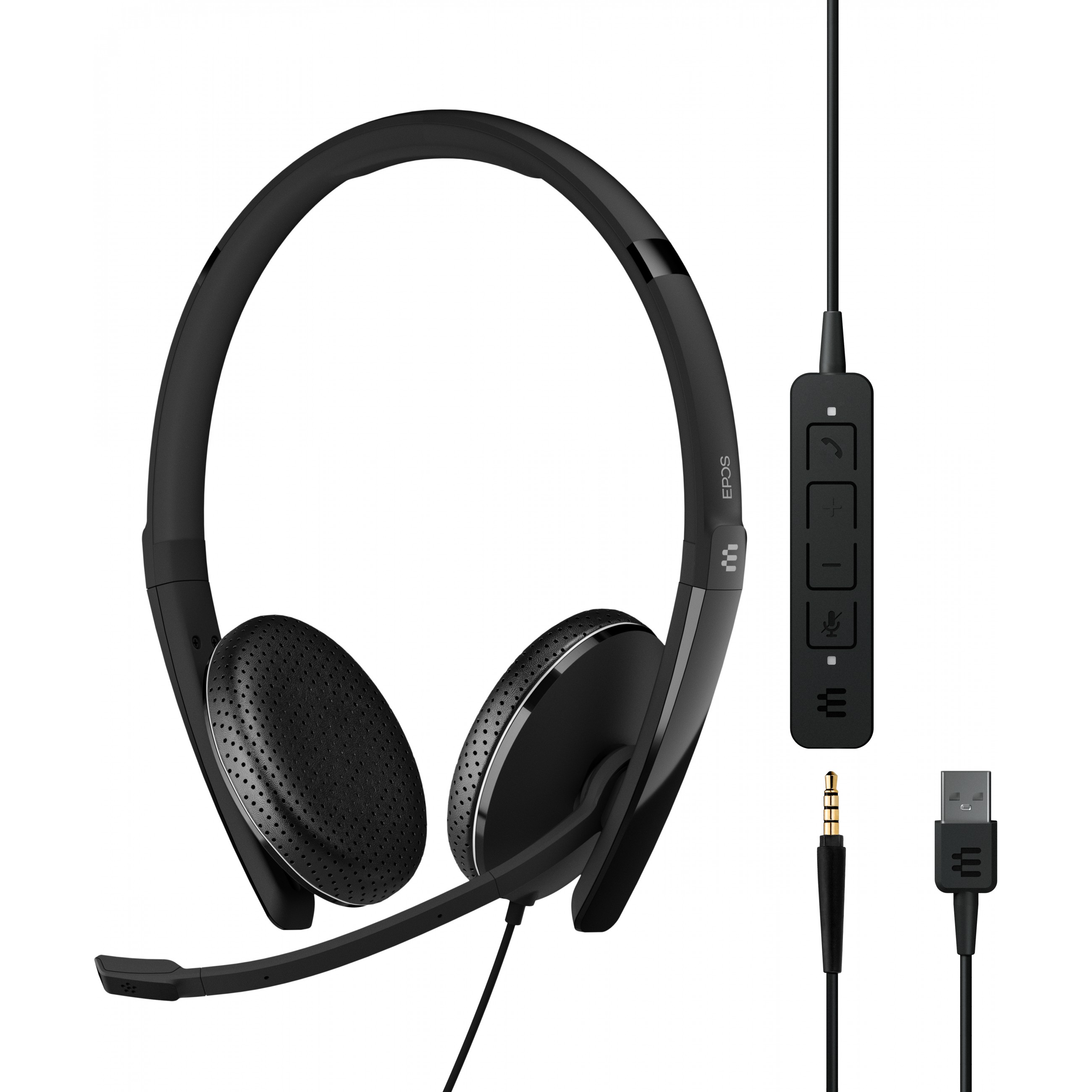 Ohraufliegendes, binaurales (beidseitiges) USB-Headset mit 3,5-mm-Klinkenstecker und abnehmbarem USB-Kabel mit In-Line Call Control. Arbeiten. Hier und überall, mit einem stilvollen, komfortablen Headset für die Anforderungen des heutigen hybriden Arbeitsplatzes mit herausragendem Stereosound.