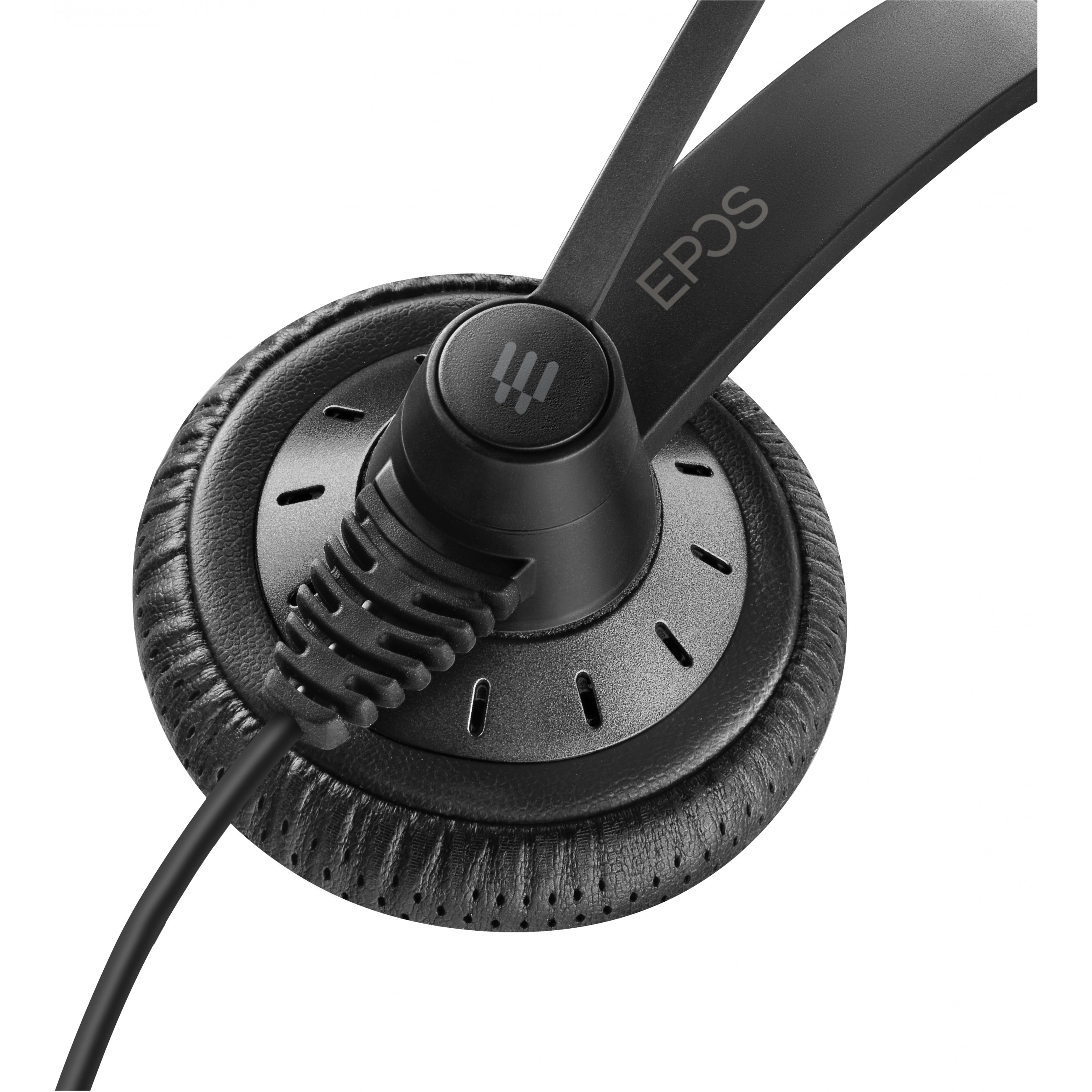 Kabelgebundenes, beidseitiges Headset mit 3,5-mm-Klinkenstecker und USB-Anschluss für die Abwicklung von Anrufen auf Mobilgeräten und über PC/Softphone. Skype for Business-Zertifizierung Mit EPOS Voice™ für Anrufe in perfekter Sprachqualität und einem Noise Cancelling-Mikrofon für natürliche, klare Gespräche. Viel Komfort dank flexiblem Kopfbügel mit weicher Kunstlederpolsterung und verschiedenen Ohrpolstern. Für CC-Agenten, die Flexibilität, Komfort und perfekten Klang schätzen.