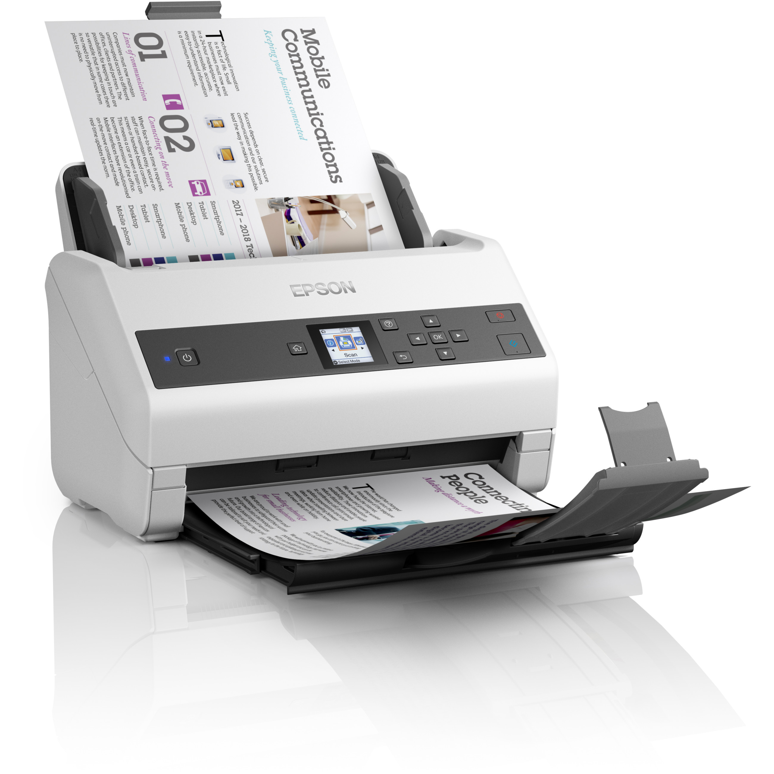Benutzer müssen sich keine Gedanken über Variationen in Dokumenten machen, die sie erfassen müssen. Er bietet das umfassendste Papiermanagement der Epson Lösungen (von 27 bis 413 g/m²) und einen Scan-Modus für lange Papierformate bis 6096 mm. Im langsamen Modus wird die Reibung der Dokumente aneinander verringert, indem die Geschwindigkeit der Einzugsrollen verlangsamt wird. So können empfindliche oder beschädigte Dokumente einfach erfasst werden, ohne dass die Größe der Dateien steigt. Das aktive Rollentrennsystem verhindert den gleichzeitigen Einzug mehrerer Dokumente und stellt sicher, dass jedes Blatt Papier gescannt wird Mit einer Funktion zur Ausschaltung der Doppeleinzugserkennung können Sie schwierige Medien wie z. B. Umschläge oder Dokumente mit Post It-Notizen scannen.