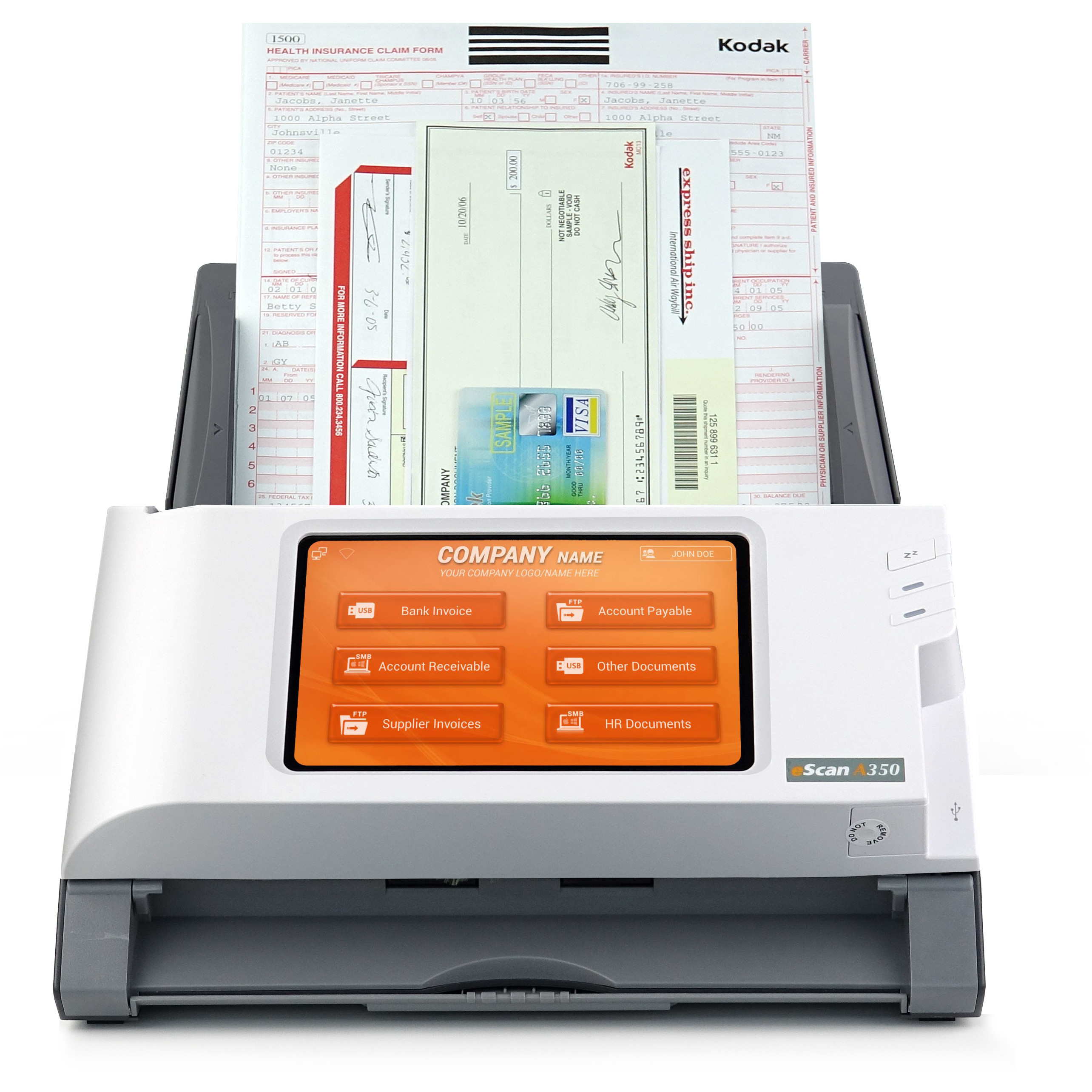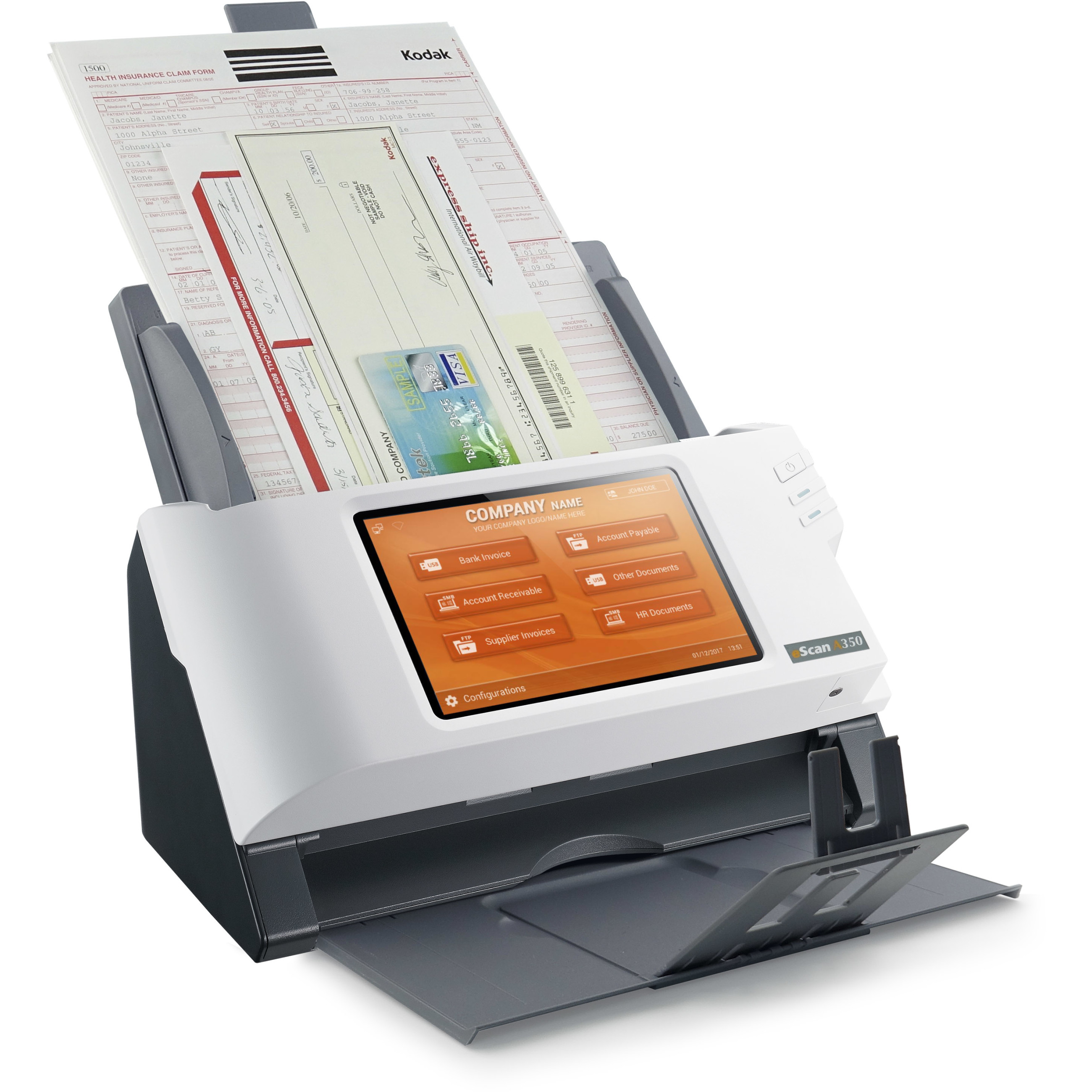 Die preisgekrönten Modelle der Plustek eScan Serie gehören zur Serie der leistungsstarken und robusten Stand-Alone Netzwerkscannern. Mit dem automatischem Vorlageneinzug und ihrem komfortabel bedienbaren Touchscreen sind sie ideal geeignet für eine schnelle Digitalisierung von Dokumenten. Neben A4 Vorlagen können auch Fotos, Belege, Rezepte, geprägte Karten, Visitenkarten und vieles mehr verarbeitet werden – und das ohne PC.