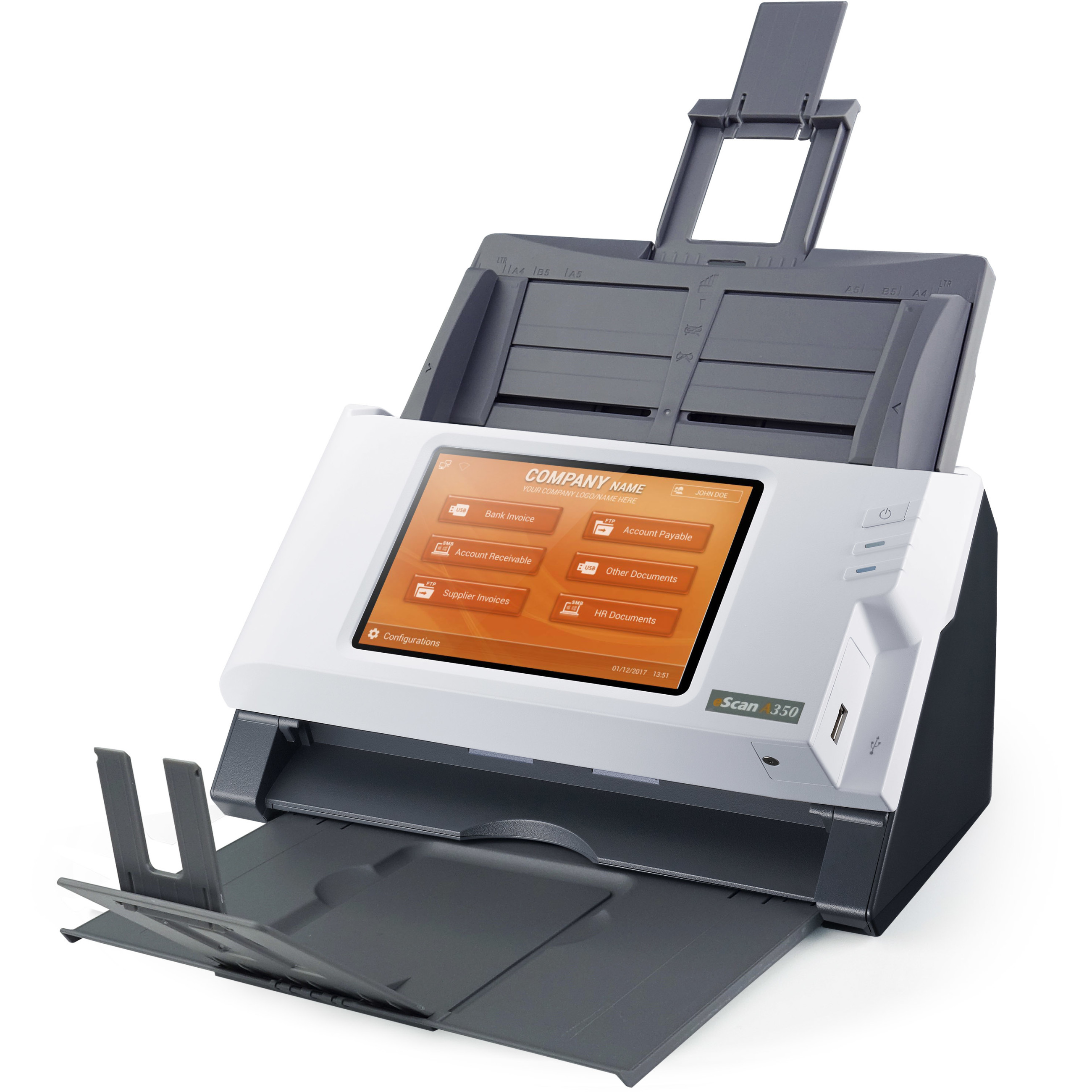 Scan to: E-Mail, FTP, SMB, USB