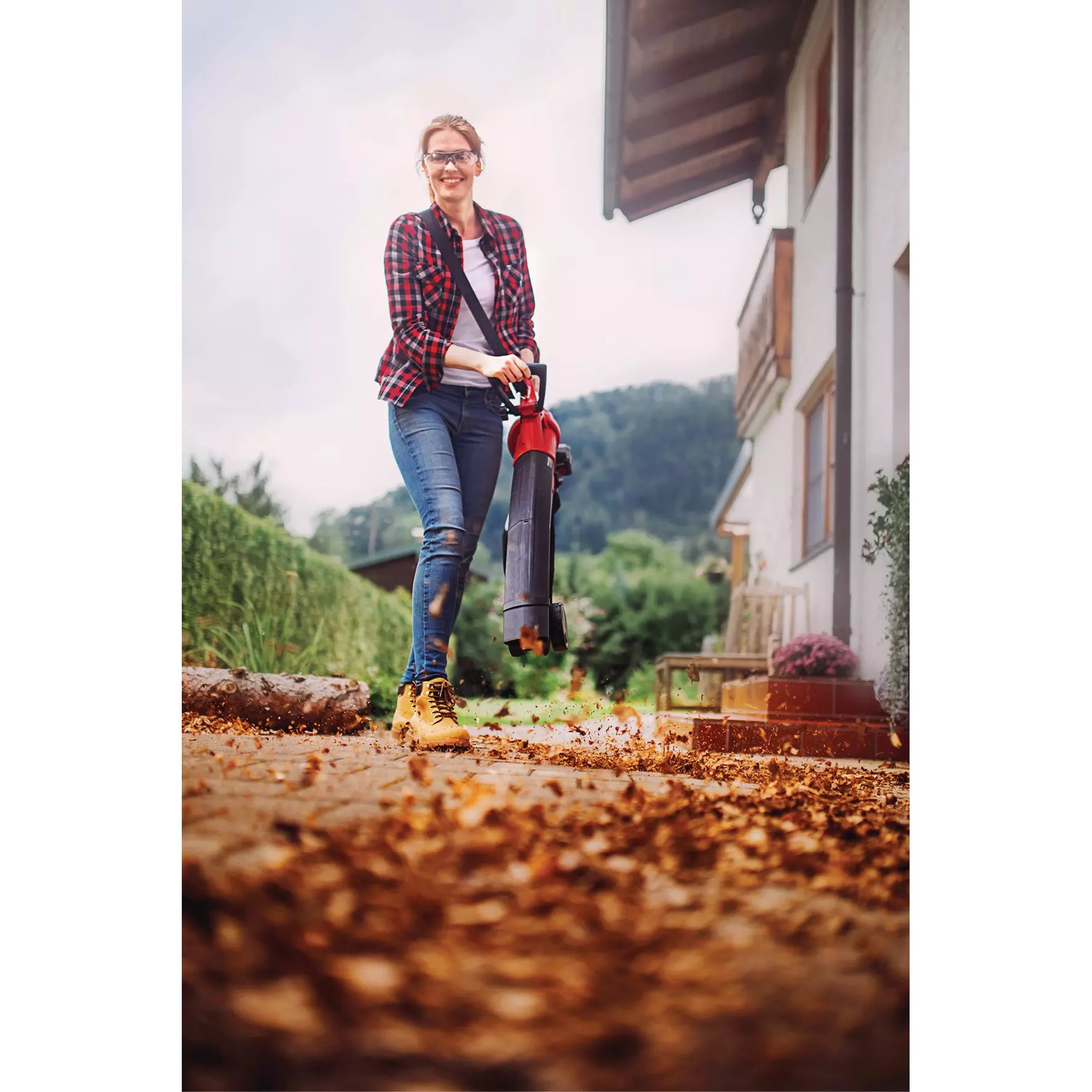Der Einhell Akku-Laubsauger GE-CL 36 Li E-Solo ist ein handlicher und leistungsstarker Laubsauger für den grenzenlosen Einsatz in Garten und Hof. Der griffige Laubsauger lässt sich überall dort einsetzen, wo er gebraucht wird. Bequem und ohne Werkzeug kann er von Saug- auf Blasfunktion umgestellt werden. Ein verstellbarer Zusatzhandgriff sorgt für einen festen Halt bei der Arbeit. Mittels der elektronischen Drehzahlregulierung kann die gewünschte Intensität der Saug- und Blasfunktion reguliert werden. Der Fangsack mit Sichtfenster ermöglicht auf einen Blick eine Füllstandskontrolle. Zudem verfügt der Akku-Laubbläser von Einhell über einen komfortablen Tragegurt, der das Gewicht auf den Körper verteilt und so Ermüdungserscheinungen bei der Arbeit vorbeugt. Durch die großen Räder kann der Akkubläser bei Arbeiten am Boden abgestellt und geschoben werden, der Hobbygärtner wird dadurch weiter entlastet. Die Lieferung erfolgt ohne Akku und ohne Ladegerät.