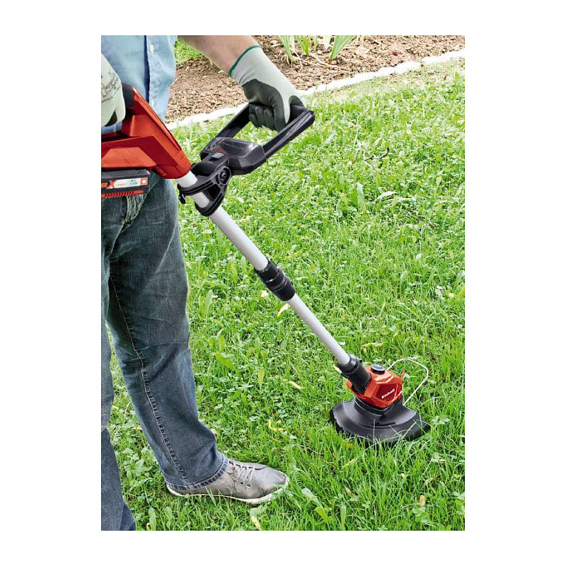 Der Akku-Rasentrimmer GE-CT 18 Li Kit ist ein leistungsstarkes Gerät, das überall dort für einen gepflegten Rasen sorgt, wo der Rasenmäher nicht hinkommt. Durch das neue Power X-Change Batteriesystem von Einhell verfügt der Rasentrimmer über einen 18 V Akku mit 1,5 Ah für ausgedehnte, stromnetzunabhängige Arbeitseinsätze. Auf der Akku-Füllstandanzeige mit drei LEDs kann zudem der aktuelle Ladezustand auf einen Blick abgelesen werden.