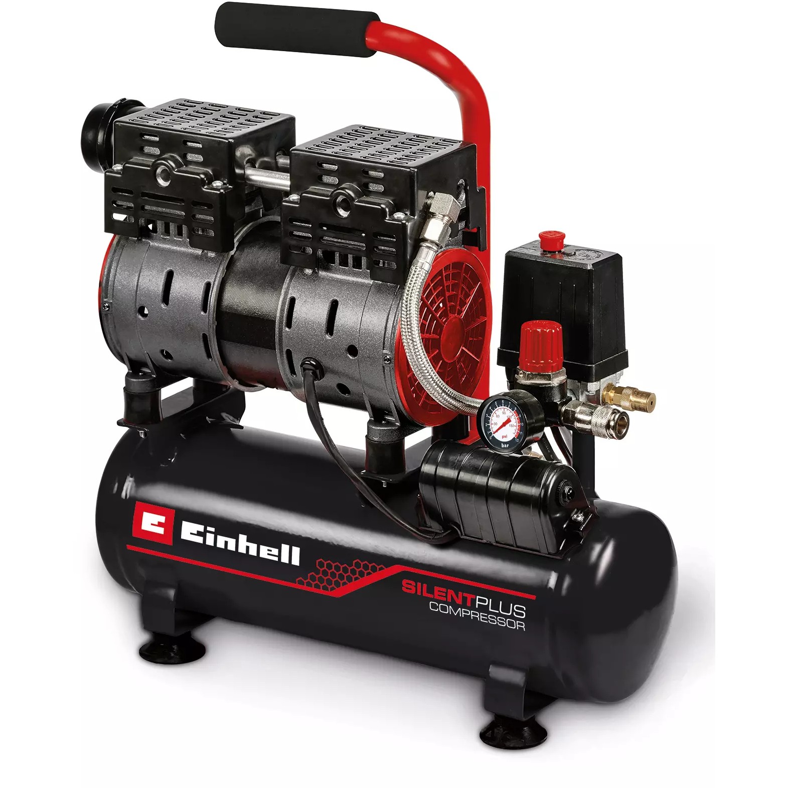 Mit dem Kompressor TE-AC 6 Silent hält ein multifunktionales Basisgerät Einzug in die Garage oder Werkstatt. Der Kompressor zeichnet sich durch eine geringere Geräuschentwicklung aus – ein Flüsterkompressor, der mit 550 Watt aber keine Leistungsabstriche macht. Der Kompressor ist mit seinen 57dB (LpA-Wert) deutlich leiser als übliche Kompressoren mit gleicher Leistung und verfügt über einen öl- und service-freien Motor mit nur einem geringen Wartungsaufwand. Eine Entwässerungsschraube ermöglicht die komfortable Wartung des Kompressors. Der mobile Kompressor bietet einen 6 Liter-Drucklufttank – genügend Reserven, um mit den passenden Tools im Handumdrehen Lacke und Farben aufzutragen oder mittels Ölen großflächig oder gezielt Hölzer zu imprägnieren. Ausblas- oder Sandstrahlarbeiten lassen sich ebenso in der Werkstatt erledigen. Der Rundum-Helfer pumpt mühelos Auto- sowie Motorrad- und Fahrradreifen, Bälle oder Luftmatratzen auf. Einhell ist von der Qualität überzeugt und bietet zehn Jahre Garantie gegen Durchrostung des Kessels. Die zahlreichen Anwendungen bis 8 bar sind mittels Druckminderer regulierbar. Manometer und Schnellkupplung für den geregelten Arbeitsdruck sind enthalten. Ein Sicherheitsventil gewährt die Anwendersicherheit. Das geringe Produktgewicht und der praktische Handgriff sorgen für Mobilität - mit wenigen Handgriffen lässt sich der Kompressor einfach transportieren, vibrationsdämpfende Standfüße sorgen für einen sicheren Stand im Einsatz.