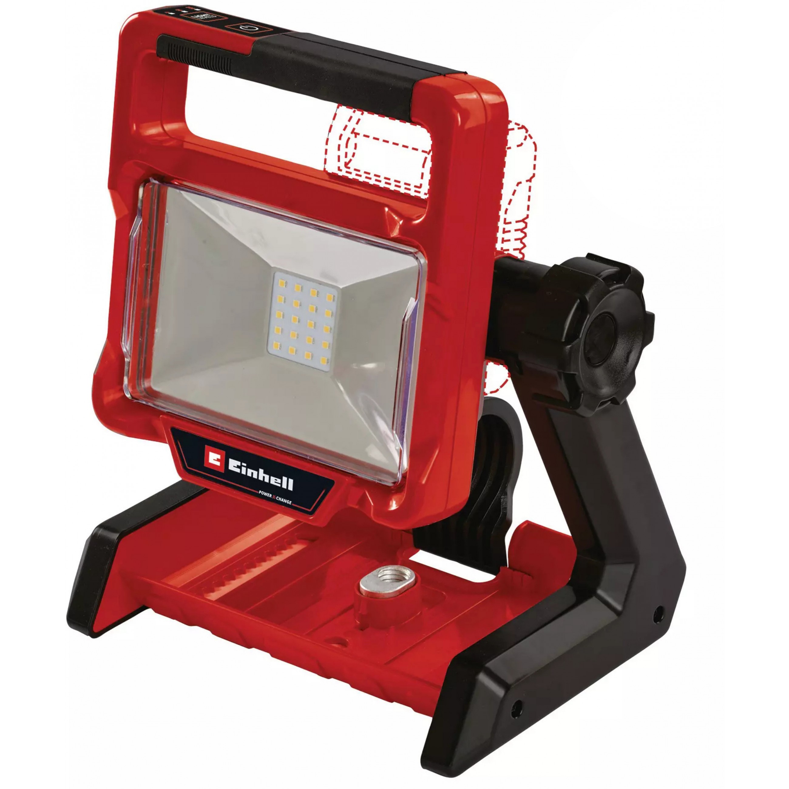 Die Einhell Akku-Lampe TE-CL 18/2000 LiAC - Solo bringt Licht ins Dunkel, ob auf der Baustelle, bei Einsätzen in der Werkstatt, Garage oder im Garten. Für optimale Helligkeit sorgt dabei ein leistungsfähiger Lithium-Ionen-Akku aus der innovativen Power X-Change-Familie. Die leistungsfähige Lampe ist Mitglied der Power X-Change-Familie, das bedeutet: jeder Akku aus dieser intelligent konzipierten Systemreihe ist mit jedem PXC-Gerät kombinierbar. Insgesamt 20 Stück leistungsfähige und moderne LED-Lichter sorgen dabei für optimale Ausleuchtung, und das in jedem Winkel und jeder Ecke. Denn die Einhell Akku-Lampe TE-CL 18/2000 LiAC – Solo ist höchst flexibel dank des schwenkbaren Leuchtkopfes. Dabei ist die Akku-Lampe tragbar und handlich. Die Hybridfunktion ermöglicht zudem ständige Einsatzbereitschaft, denn neben dem Betrieb mit dem Lithium Ionen-Akku kann die Leuchte auch mit dem Strom eines 220-Volt-Anschlusses gespeist werden. Dank zahlreicher Befestigungsmöglichkeiten sind dem universellen Einsatz quasi keine Grenzen gesetzt. Die Lieferung erfolgt ohne Akku und ohne Ladegerät. Diese sind separat erhältlich, zum Beispiel als praktisches Starter-Set für die Geräte der Power X-Change-Familie.