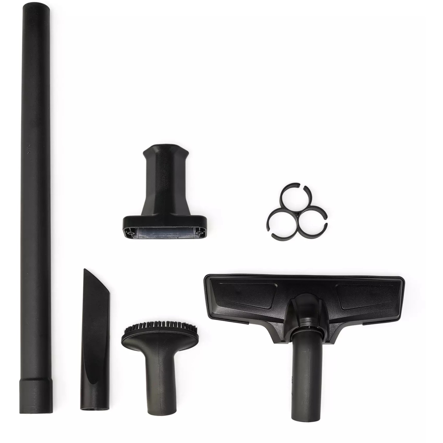 Der Einhell Akku-Handstaubsauger TE-VC 18 Li-Solo ist jederzeit griffbereit, um Schmutz und lästige Krümel zu beseitigen, ob auf Teppich, Sofa oder Tisch. Das handliche Kraftpaket gehört der bewährten Power X-Change-Familie von Einhell an. Akkus dieser Reihe können in allen Geräten der Systemfamilie verwendet werden. Kurze Reichweiten, zahllose Akkus und Ladegeräte sowie schwache Leistungen gehören der Vergangenheit an. Der Akku-Handstaubsauger reinigt blitzschnell jede Oberfläche dank seiner drei Düsen, die im Lieferumfang enthalten sind. Die Bodendüse ist speziell für Hartböden und glatte Flächen geeignet. Eine weitere Düse ist für Polster und Stoffe geeignet. Mit der Fugendüse reinigt der Benutzer auch schwer erreichbare Stellen ohne große Mühen. Mit Hilfe des 46,5 Zentimeter langen Verlängerungsrohrs kann der handliche Akku-Staubsauger auch als Bodenstaubsauger und damit bequem in einer aufrechten Haltung eingesetzt werden. Der Staubfangbehälter verfügt über ein Fassungsvermögen von 540 Milliliter. Durch die integrierte Wandhalterung ist eine platzsparende Aufbewahrung gewährleistet. Die Lieferung erfolgt ohne Akku und Ladegerät, diese sind separat erhältlich, zum Beispiel als praktisches Starterset.