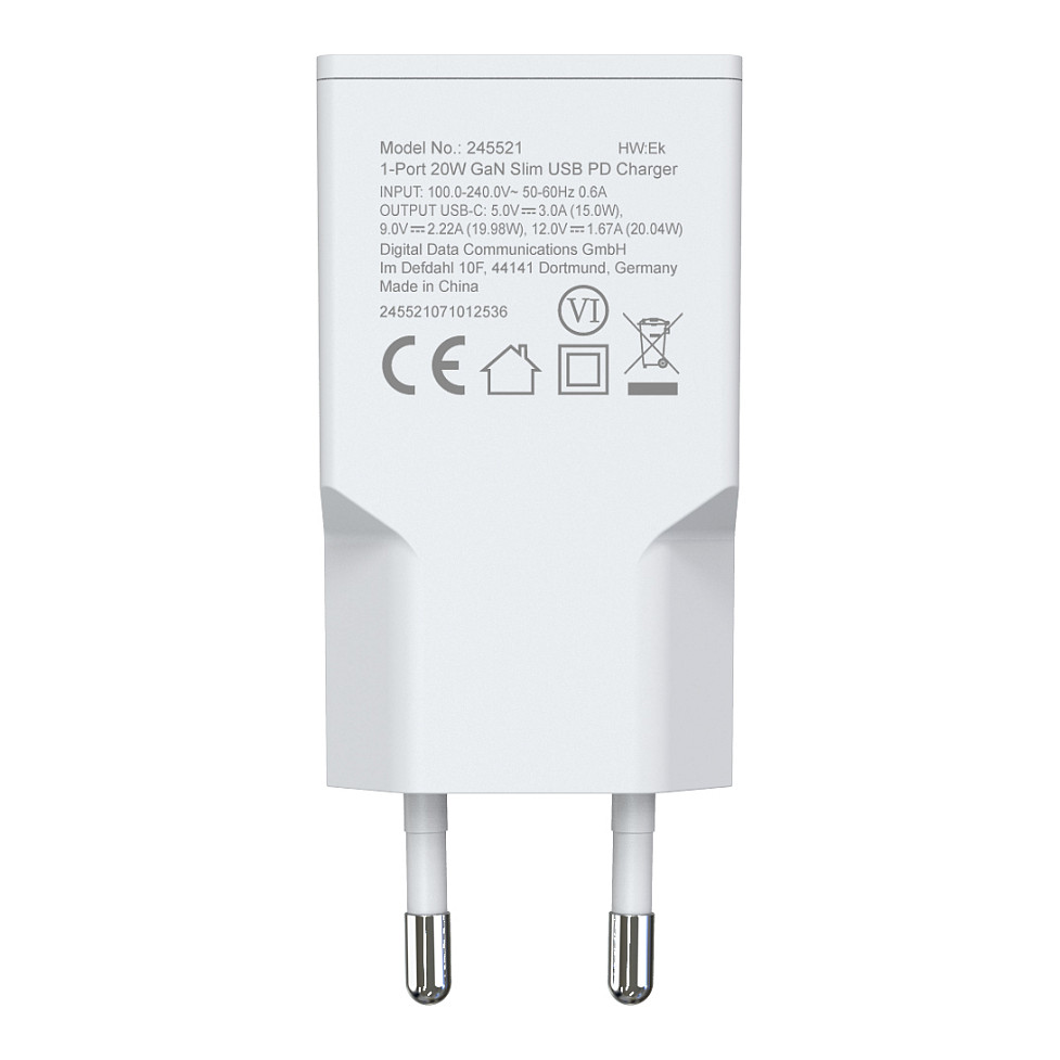 Mit einer USB-C Power Delivery (PD)-Leistung von bis zu 20 W ermöglicht es schnelles und zuverlässiges Laden für eine Vielzahl von Geräten, darunter Smartphones, Tablets, kabellose Ohrhörer, Powerbanks und andere USB-C-fähige Gadgets. Das intelligente PD-Protokoll erkennt das angeschlossene Gerät automatisch und liefert die optimale Leistung. Dies gewährleistet sicheres und effizientes Laden und schützt Ihre Geräte gleichzeitig vor Überstrom, Überspannung und Kurzschlüssen.