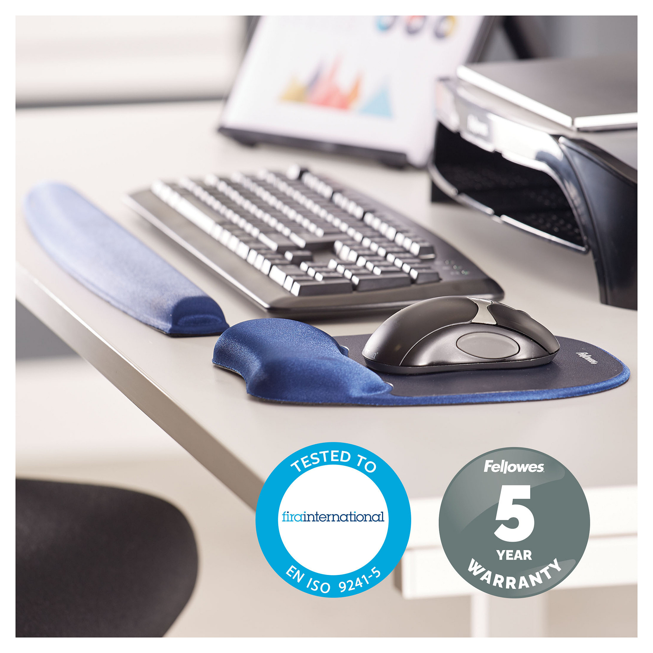 Fellowes 9172801. Breite: 201,6 mm, Tiefe: 235 mm. Produktfarbe: Blau, Oberflächenfärbung: Einfarbig, Material: Memory-Schaum, Handgelenkauflage