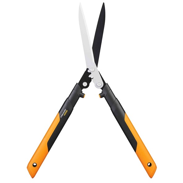 Die Fiskars PowerGearX™ Getriebeheckenschere bietet 3x höhere Schneidleistung durch den einzigartigen patentierten Mechanismus. Dazu kommen noch PTFE-antihaftbeschichtete Klingen aus hochwertigem Stahl zur Reibungsreduzierung. Die Edelstahlklingen werden ergänzt durch einen wetterfesten, leichten und dennoch unglaublich stabilen Aluminiumstiel. Sein SoftGrip-Material und die 3-D-Kontur erfordern weniger Kraftaufwand beim Halten.