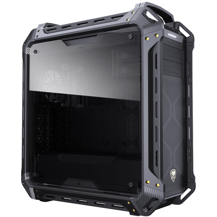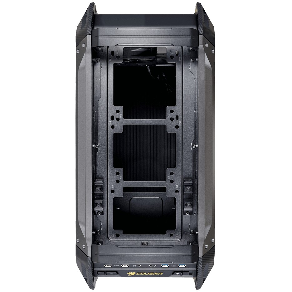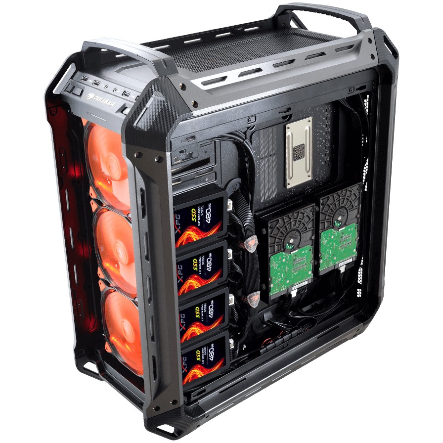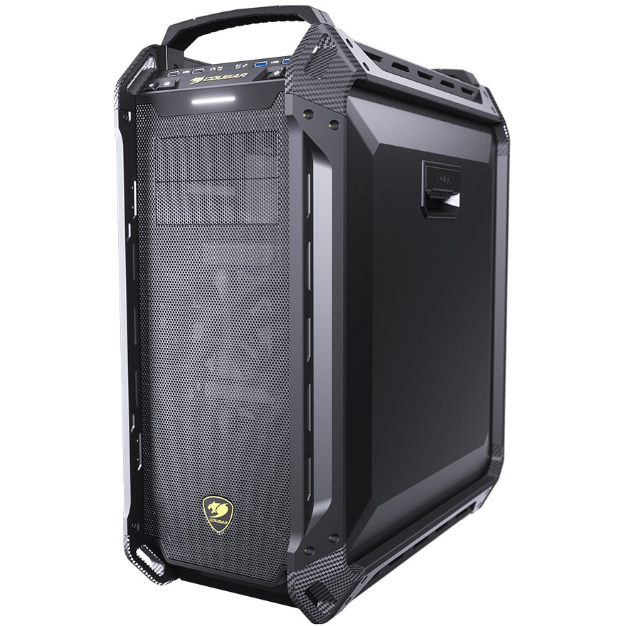 COUGAR Gehäuse Full-Tower, Panzer Max-G, Schwarz. Formfaktor: Full Tower, Typ: PC, Produktfarbe: Schwarz. Durchmesser unterstützte Vorderseitenlüfter: 120,140 mm, Installierte Lüfter hinten: 1x 120 mm, Durchmesser unterstützter Rückseitenlüfter: 120 mm. Unterstützte Hard-Disk Drive Größen: 2.5,3.5". Breite: 266 mm, Tiefe: 556 mm, Höhe: 612 mm. Verpackungsbreite: 380 mm, Verpackungstiefe: 668 mm, Verpackungshöhe: 668 mm