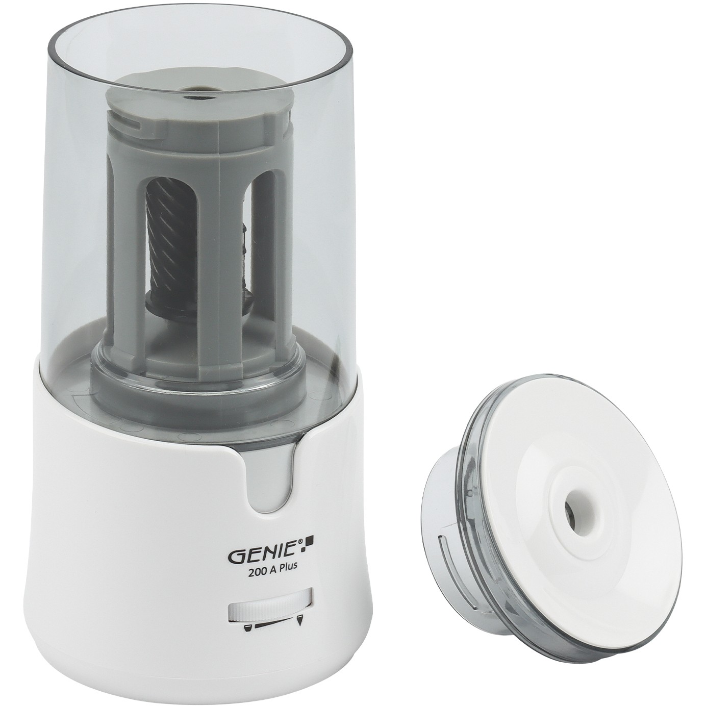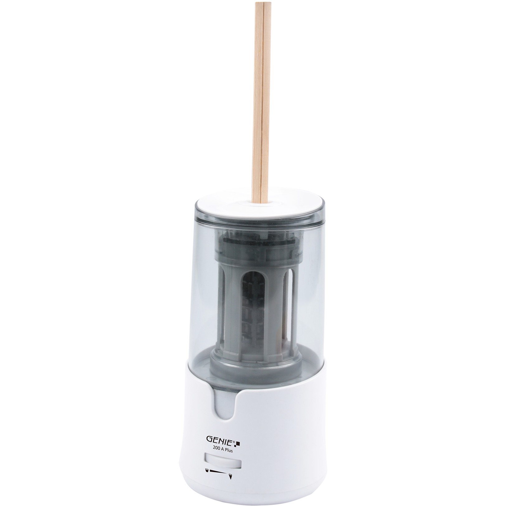 Elektrischer Bleistiftspitzer geeignet für alle Blei- bzw. Buntstifte der Größe Ø 6.5~Ø 11mm, einstellbare Bleistiftspitze: Ø 0.5, Ø 0.75, Ø 1.0, Ø 1.25, Ø 2.0mm. Der Spitzer stoppt sobald der Bleistift die vorgewählte Spitze erreicht hat. Zuverlässiges Spitzen durch hochwertigen Stahlfräser (geringerer Holzabrieb) für zu Hause oder im Büro, inklusive Netzteil.