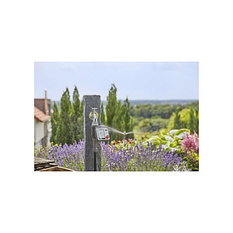 Die Bewässerungssteuerung Master von GARDENA bietet Dir bei der Bewässerung Deiner Pflanzen im Garten viele Möglichkeiten. Eine automatische Gartenbewässerung bedeutet für Dich mehr Freizeit und eine optimale Wasserversorgung von Rasen, Blumenbeeten oder Sträuchern. Die batteriebetriebene Bewässerungssteuerung schließt Du direkt an den Wasserhahn an und verbindest den Gartenschlauch an den Wasserausgang. Bis zu sechs Bewässerungszeitpläne stehen Dir unabhängig voneinander zur Verfügung. Passe die individuelle Auswahl der Bewässerungen den Bedürfnissen Deiner Pflanzen an. Mit dem separat erhältlichen Wasserverteiler automatic können bis zu sechs verschiedene Anschlussgeräte zeitgesteuert werden. Durch den innovativen Dreh- und Drückschalter ist das Einstellen der flexiblen Zeitpläne auf dem gut lesbaren LC-Display in zehn verschiedenen Sprachen einfach. In wenigen Handgriffen legst Du den Startzeitpunkt, die Länge und das Intervall der Bewässerung fest. Die wetterbeständige Bedieneinheit des Garten-Bewässerungssystems ist abnehmbar und der Batteriestand wird jederzeit angezeigt. Mit der Bewässerungssteuerung Master passt Du Dich Schlechtwetterphasen an und reduzierst entweder die Bewässerungsdauer zentral in 10%-Schritten oder setzt sie für 1 bis 9 Tage aus. Durch die Water-Now-Funktion zapfst Du Wasser, ohne die Steuerung abnehmen zu müssen. Dank der Safe-Water-Stop-Technologie wird bei geringer Batterieleistung die nächste Bewässerung nicht gestartet, um einen unkontrollierten Wasseraustritt zu verhindern. Möchtest Du nachhaltig Wasser einsparen, kannst Du den GARDENA Bodenfeuchtesensor direkt an das Gerät anschließen. Der Sensor erkennt, ob die Erde noch feucht genug ist, sodass gegebenenfalls eine geplante Bewässerung nicht startet. Die Bewässerungssteuerung Master ist ein Qualitätsprodukt Made in Germany. Bewässerungssteuerung. Das komplette Sortiment mit innovativen Funktionen für die automatische und wassersparende Bewässerung.