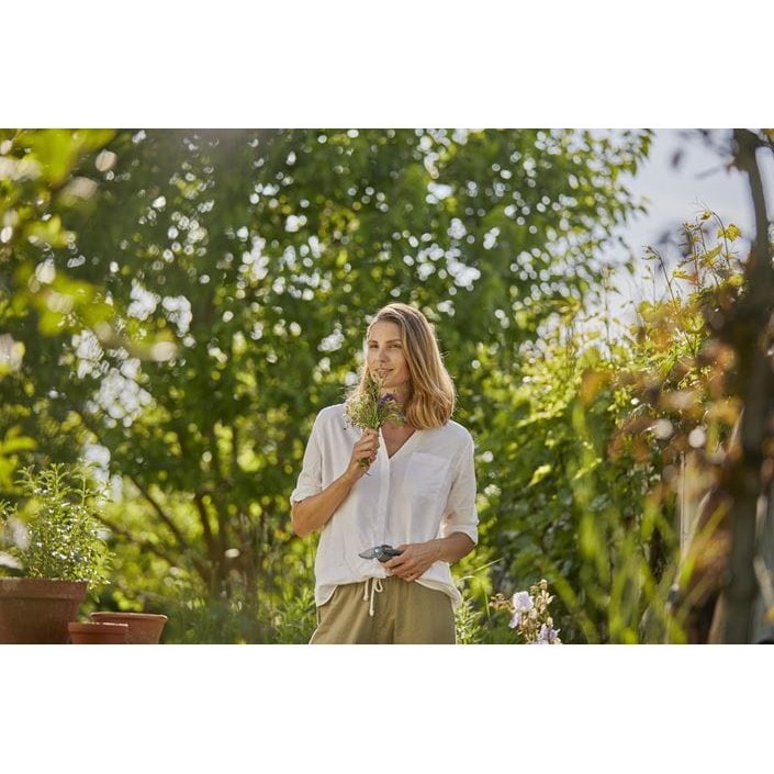Für präzises Schneiden von Blumen und jungen Pflanzentrieben. Kunststoffkomponenten jetzt aus mehr als 80% recyceltem Material.