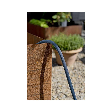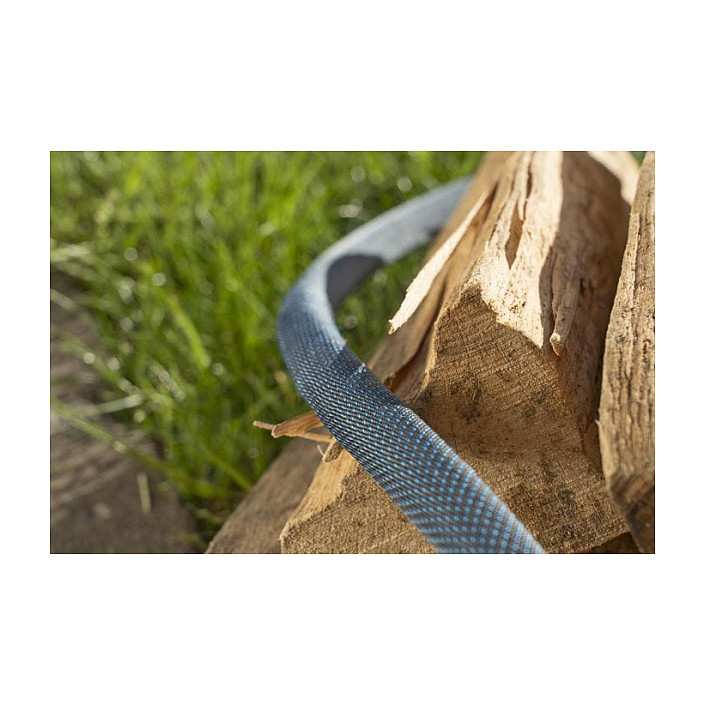 Der extrem belastbare Schlauch ist schmutzabweisend und widersteht auch groben Oberflächen wie Rosendornen, Pflastersteinen und entlang der Hauswand mühelos.