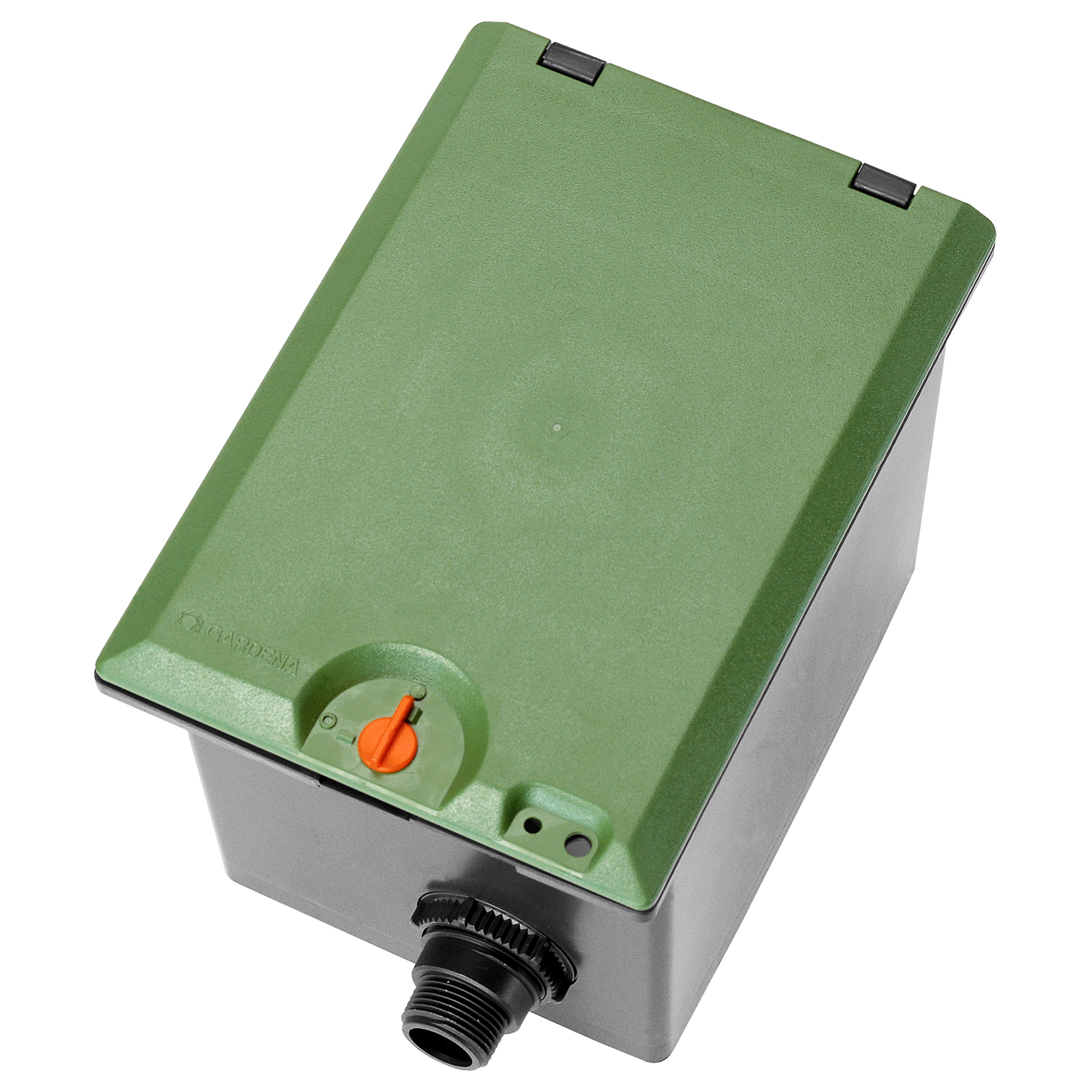 Für den Einbau eines VentilsIn der GARDENA Ventilbox V1 kann entweder ein Bewässerungsventil 24 V oder ein Bewässerungsventil 9 V unterirdisch eingebaut werden. Die Teleskop-Schraubverbindung sorgt dabei für eine einfache Ventilmontage und -demontage.