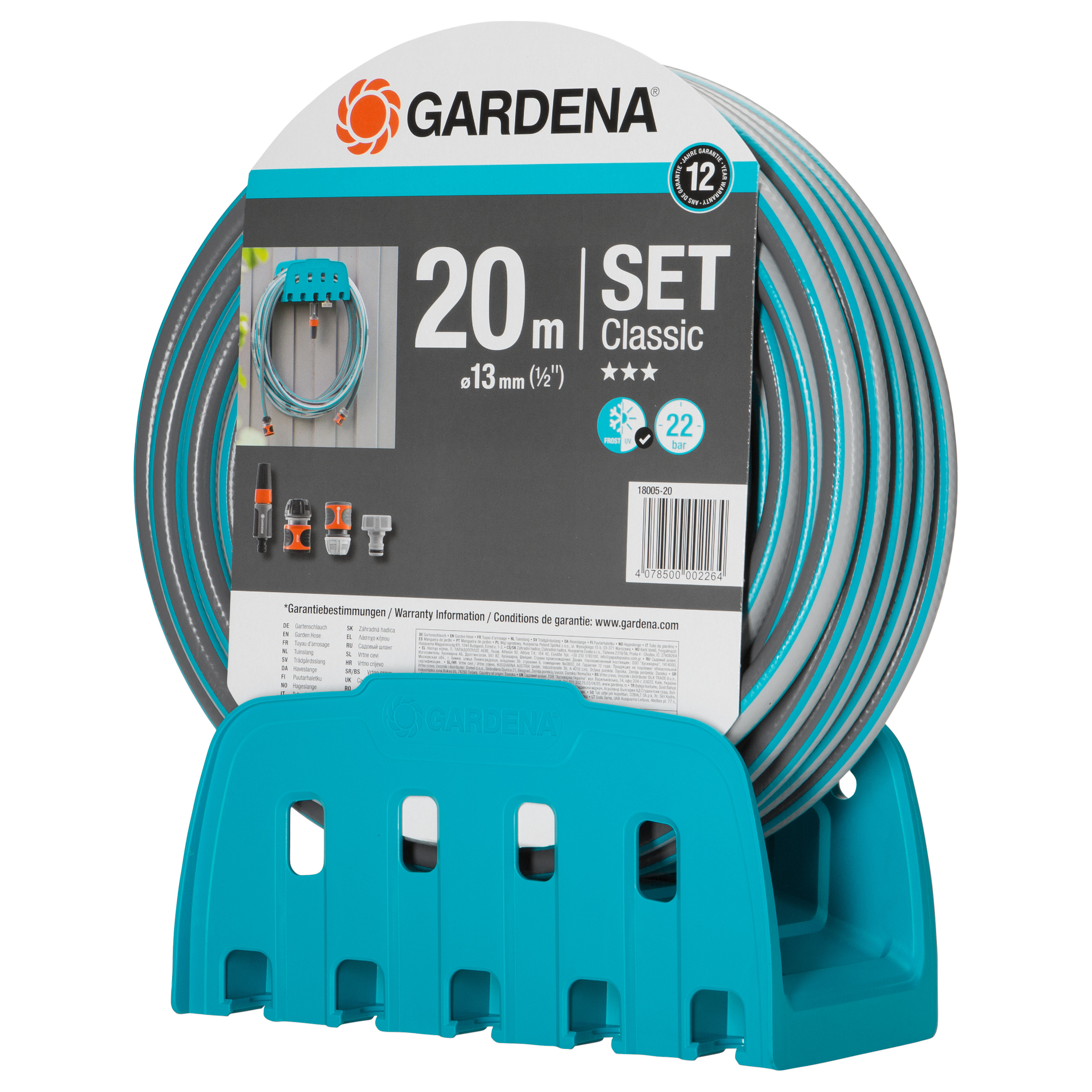 Gardena 18005-50. Schlauchlänge: 20 m, Unterstützte Positionierung: Über Boden, Produktfarbe: Blau. Hahnanschlussgröße: 1/2"