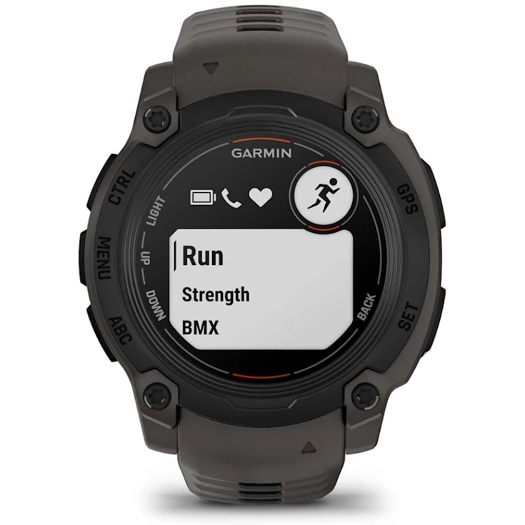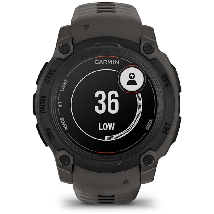 Garmin Instinct E. Bildschirmdiagonale: 2,18 cm (0.86"), Bildschirmtechnologie: MIP, Display-Auflösung: 166 x 166 Pixel. Flash-Speicher: 0,128 GB. GPS. Gewicht: 41 g. Bandmaterial: Silikon, Armbandfarbe: Anthrazit, Bandgröße: Universalgröße