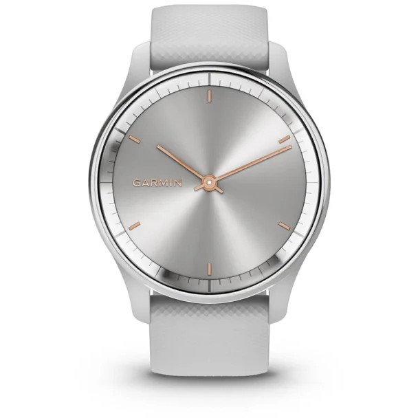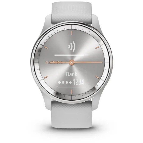 Garmin vivomove Trend. Bildschirmtechnologie: LCD, Display-Auflösung: 254 x 346 Pixel, Touchscreen. GPS. Gewicht: 28,3 g. Wasserdicht bis: 50 m, Bandmaterial: Silikon, Armbandfarbe: Grau