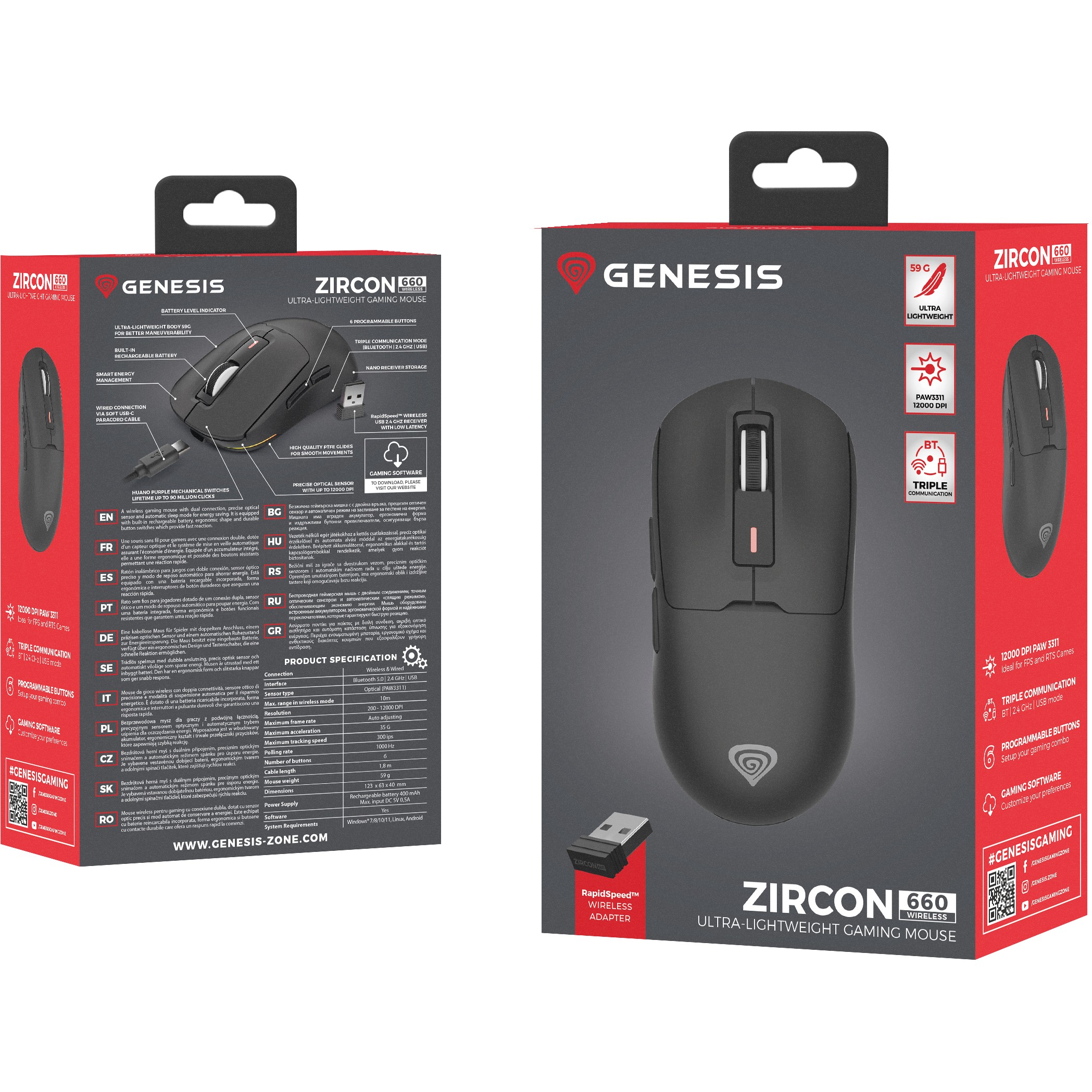 Dreifacher Kommunikationsmodus, ein zuverlässiger optischer Sensor und ein Gewicht von nur 59 Gramm, und das ist noch nicht alles. Hier ist der GENESIS Zircon 660 - der große Bruder des GENESIS Zircon 500 Modells, der noch mehr bieten wird. Egal, ob du ein Anfänger oder ein fortgeschrittener Fan von E-Sport-Spielen bist, mit der GENESIS Zircon 660 kannst du stundenlang spielen, den Komfort erhöhen und viel schneller reagieren als zuvor.