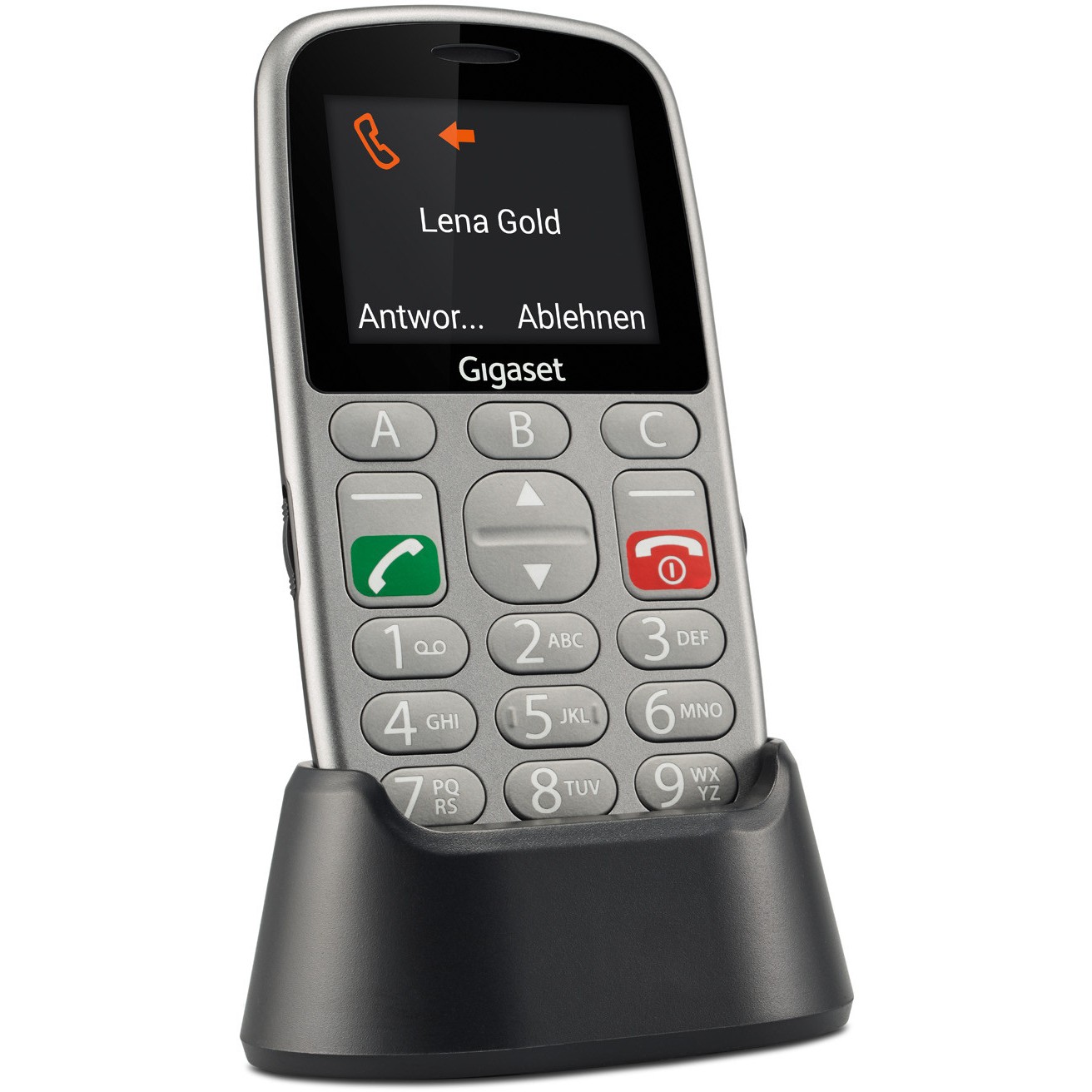 Neben Technik, auf die Sie sich einfach verlassen können, hält das Gigaset GL390 viele weitere nützliche Funktionen für Sie bereit und ermöglicht zum Beispiel die Verwendung von zwei Rufnummern (dank eines Dual-Sim-Einschubs). Vor allem die lange Akkulaufzeit (für etwa 9 Stunden Gesprächszeit bzw. 550 Stunden Akkulaufzeit) ist ein echter Pluspunkt und garantiert eine zuverlässige Erreichbarkeit. Wenn das Handy geladen werden muss, nutzen Sie ganz unkompliziert eine feste Ladestation, die zum einen die Suche nach einem Ladekabel erspart, zum anderen auf kleine Anschlüsse und unhandliche Stecker verzichtet. Vollendet wird die einfache Nutzung durch Funktionalitäten wie Kamera, Wecker, UKW Radio Taschenrechner und Taschenlampe.