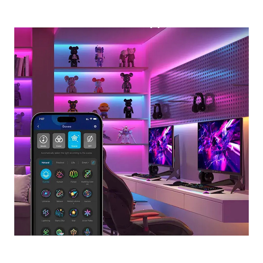 Govee H612A. Typ: Intelligenter Leuchtstreifen, Schnittstelle: Wi-Fi/Bluetooth, Produktfarbe: Weiß. Energieeffizienzklasse: G, Energieverbrauch pro 1.000 Stunden: 3 kWh, Energieeffizienzskala: A bis G. Länge (mm): 5000 mm. Verpackungsart: Box, Verpackungsbreite: 175 mm, Verpackungstiefe: 160 mm. Menge pro Packung: 1 Stück(e)