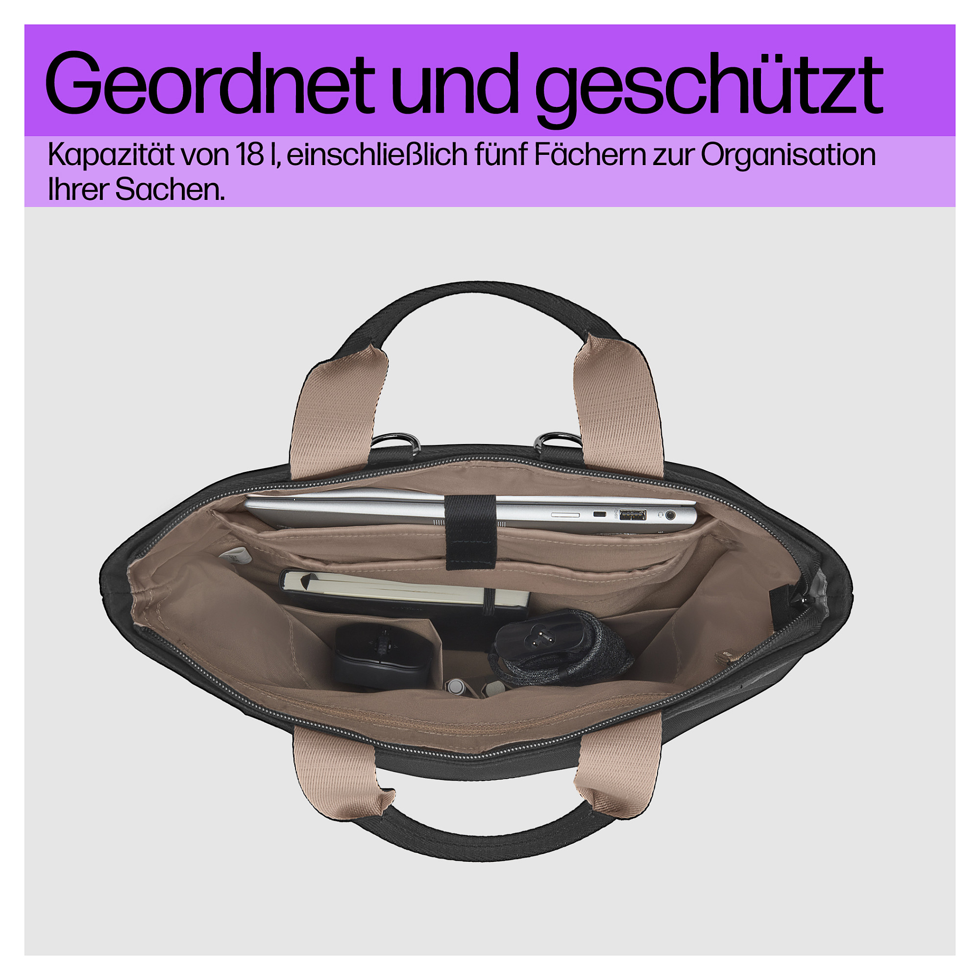 Ob auf dem Weg zur Arbeit oder unterwegs zum Spielen, diese funktionale, leichte Tasche passt sich Ihrem Stil und Ihrer Situation an, damit Ihre Technologie stets griffbereit verfügbar ist. Wandeln Sie von einem 14 Zoll[1] Laptop-Rucksack in eine Tragetasche, eine faltbare Tasche oder eine Handtasche um – Ihr optimaler Begleiter für jede Situation.