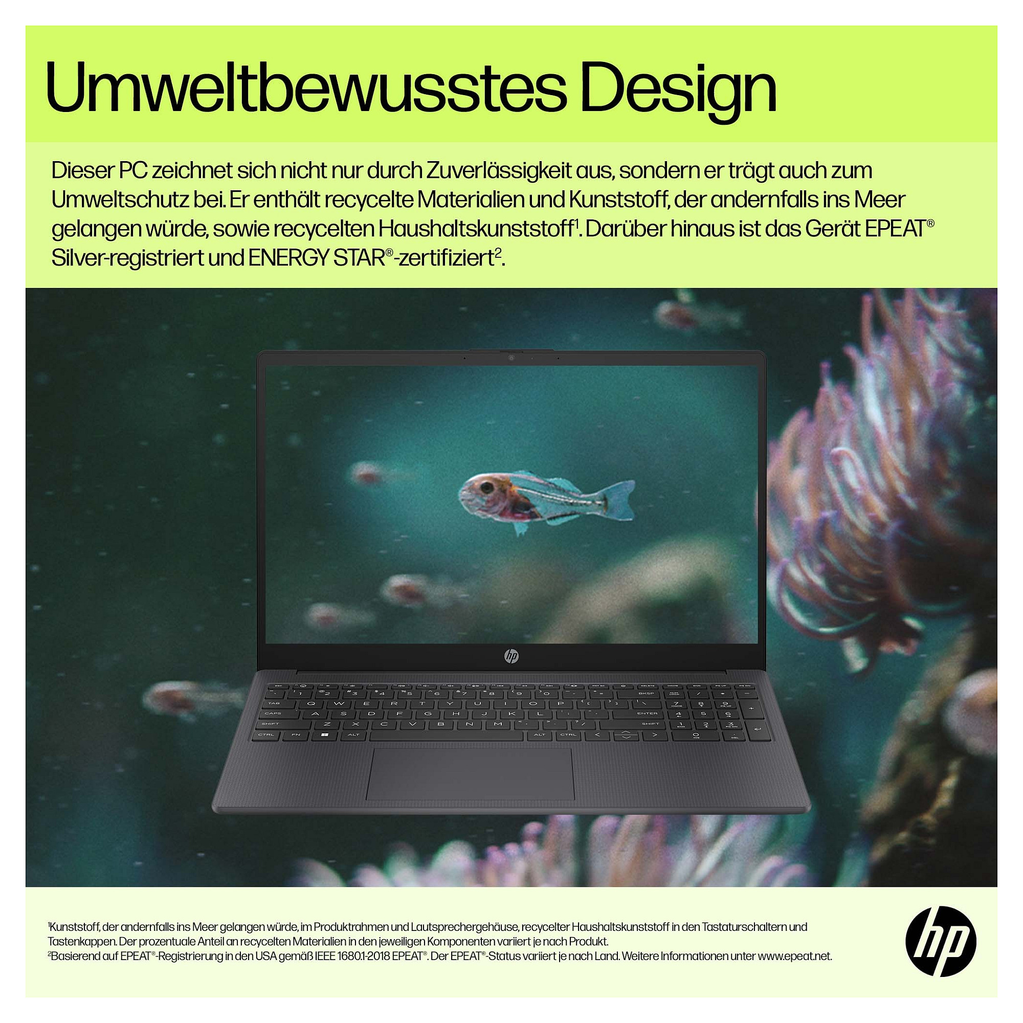 Mit dem eleganten und durchdachten HP 15,6 Zoll Laptop-PC mit zuverlässigem Intel-Prozessor[1], großzügigem Speicher und leistungsstarker Grafikkarte kannst du all deine Aufgaben mühelos erledigen. Egal, wohin es dich verschlägt – dank der Konstruktion mit Kunststoff, der andernfalls ins Meer gelangen würde, und recyceltem Haushaltskunststoff[2] zeigst du stets, dass dir die Umwelt am Herzen liegt.