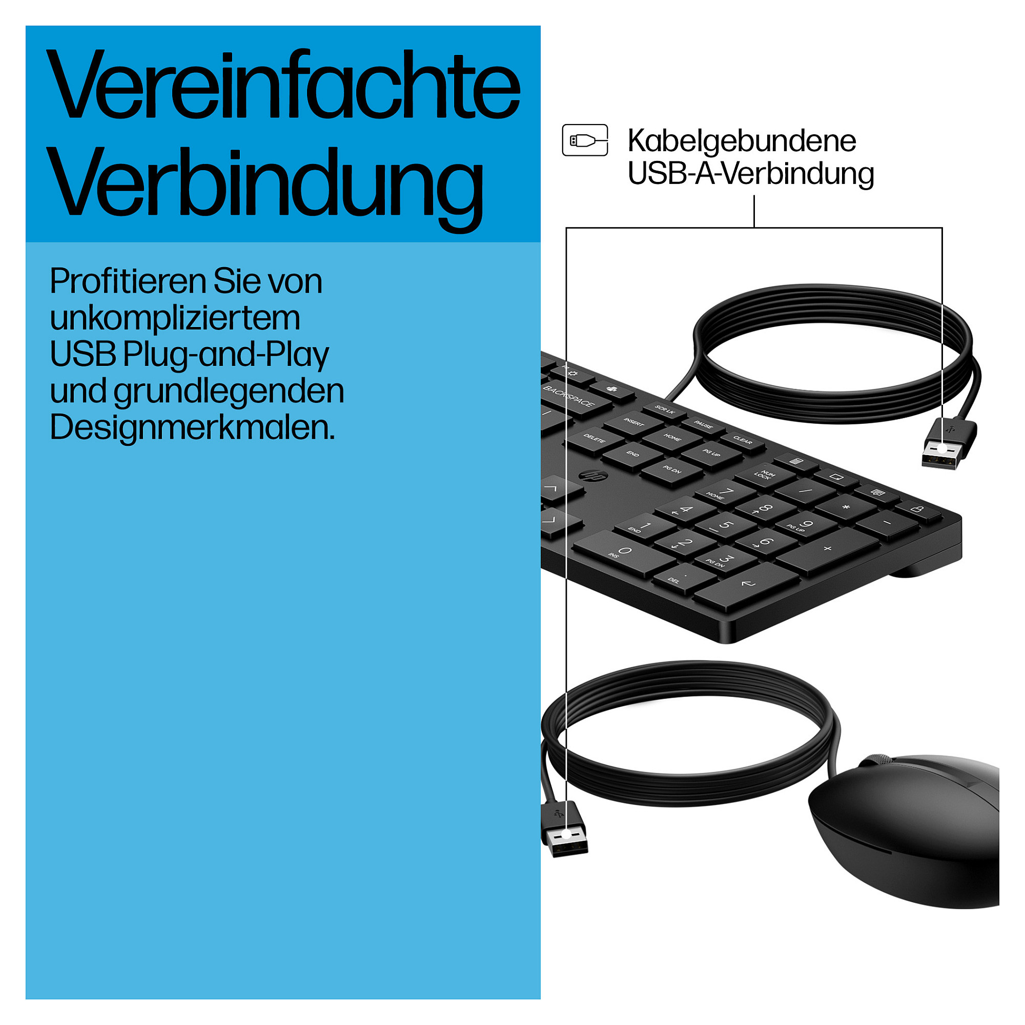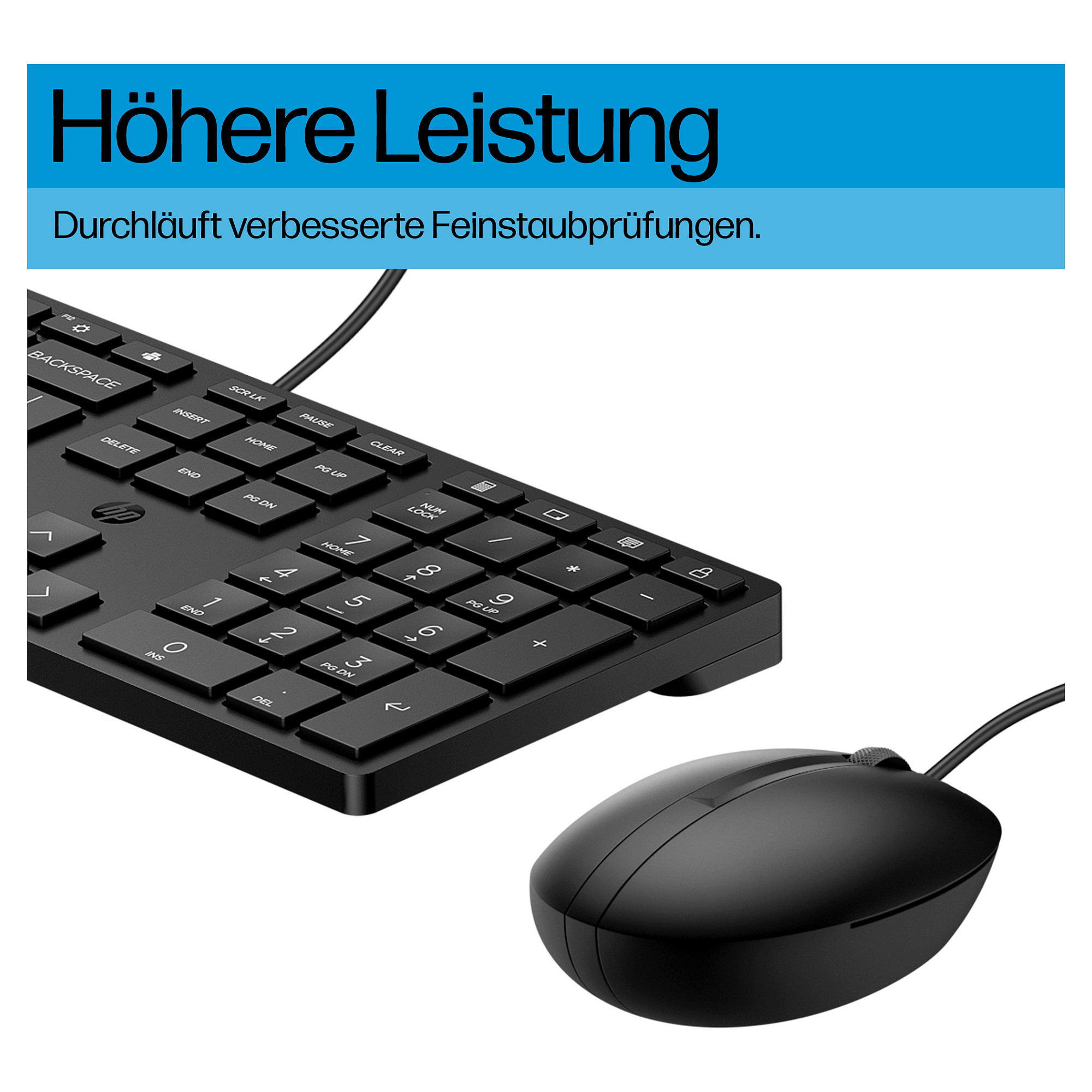 Arbeiten Sie effizient und steigern Sie Ihre Produktivität im Alltag mit der zuverlässigen kabelgebundenen HP 320MK Desktop-Tastatur und -Maus.