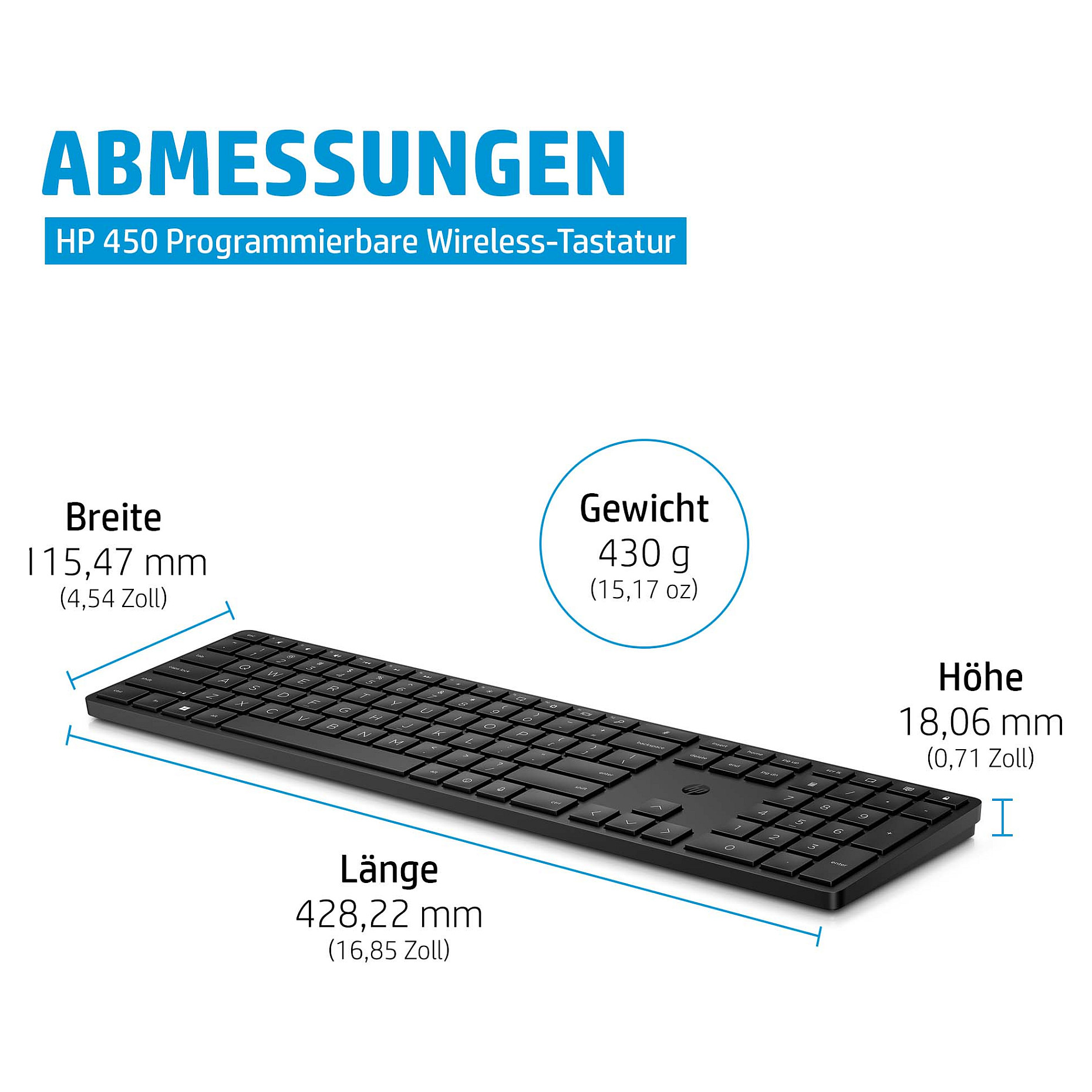 Keyboard Abmessungen (BxTxH): 428,22 x 115,47 x 18,06 mm