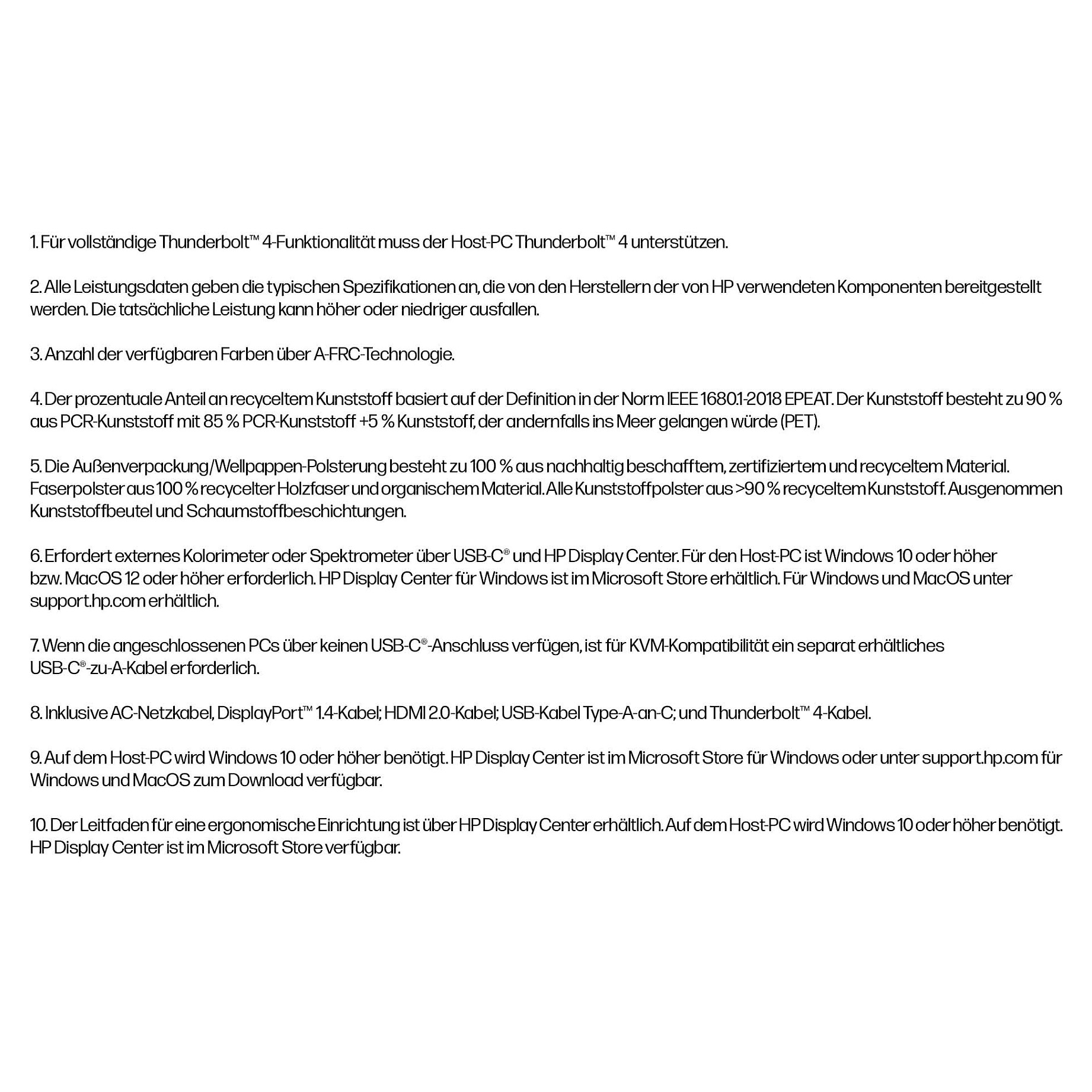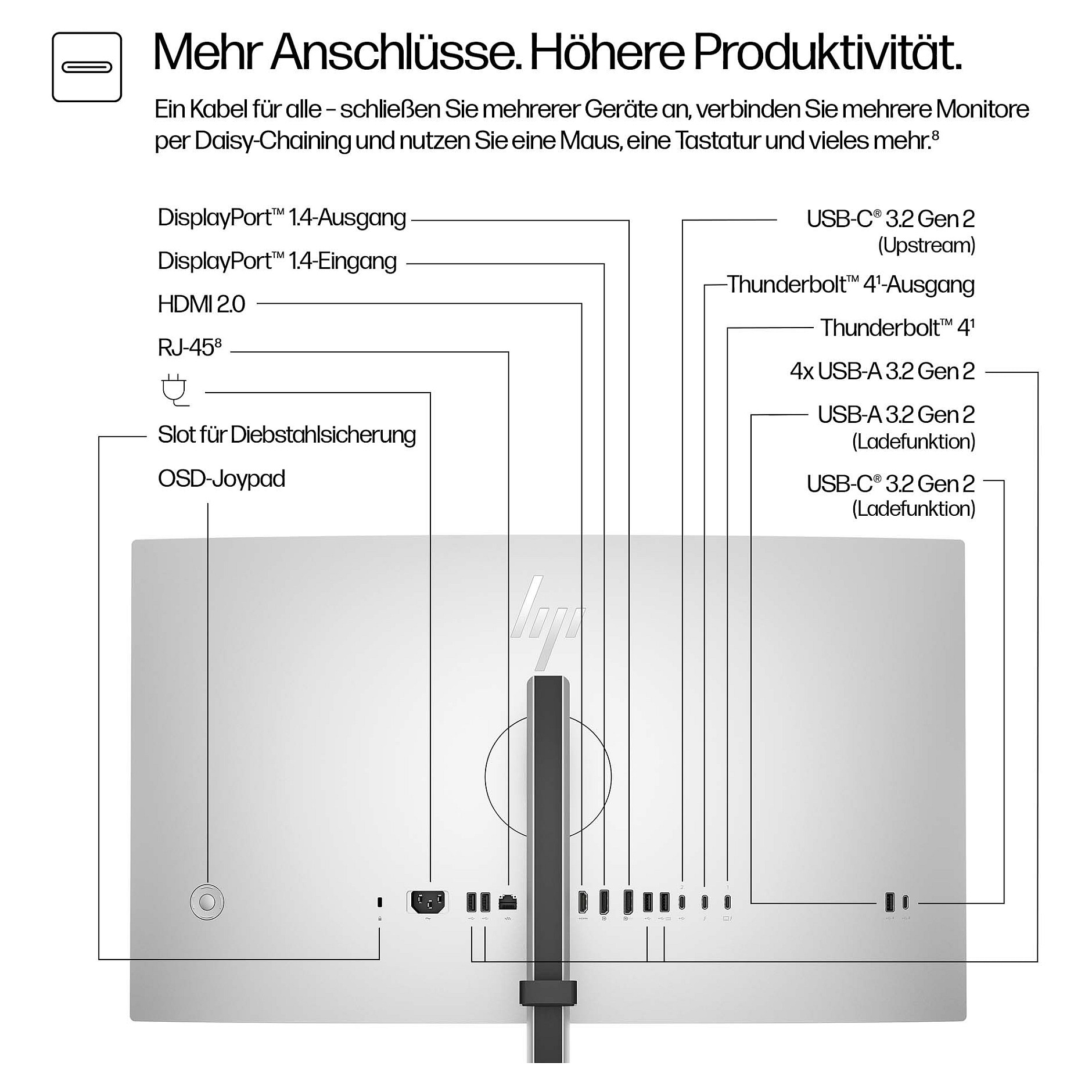 Mitgelieferte Kabel: HDMI, DisplayPort, Thunderbolt, USB Typ-C auf USB Typ-A