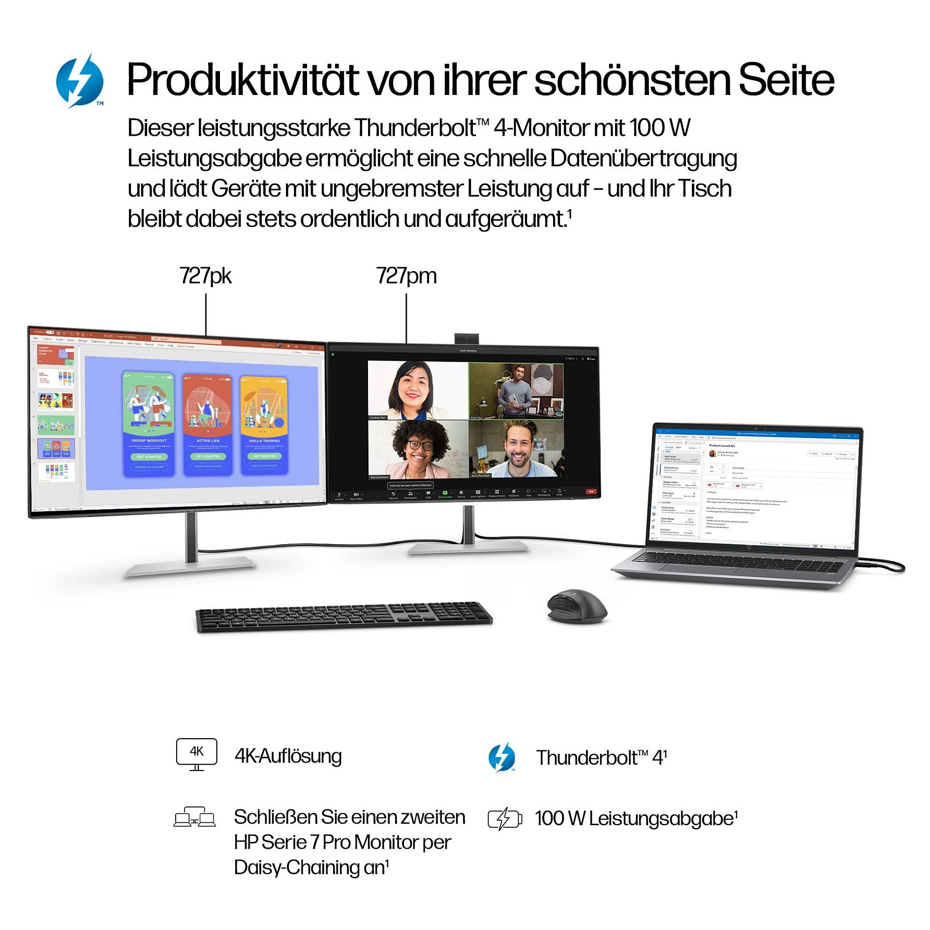 Hinterlassen Sie einen großartigen Eindruck dank der integrierten KI des HP 27 Zoll 4K-Konferenzmonitors. Intelligente Konferenzerlebnisse ermöglichen stets eine produktive, hochwertige Zusammenarbeit. All dies auf einem ansprechenden Display mit leistungsstarkem Thunderbolt™ 4.