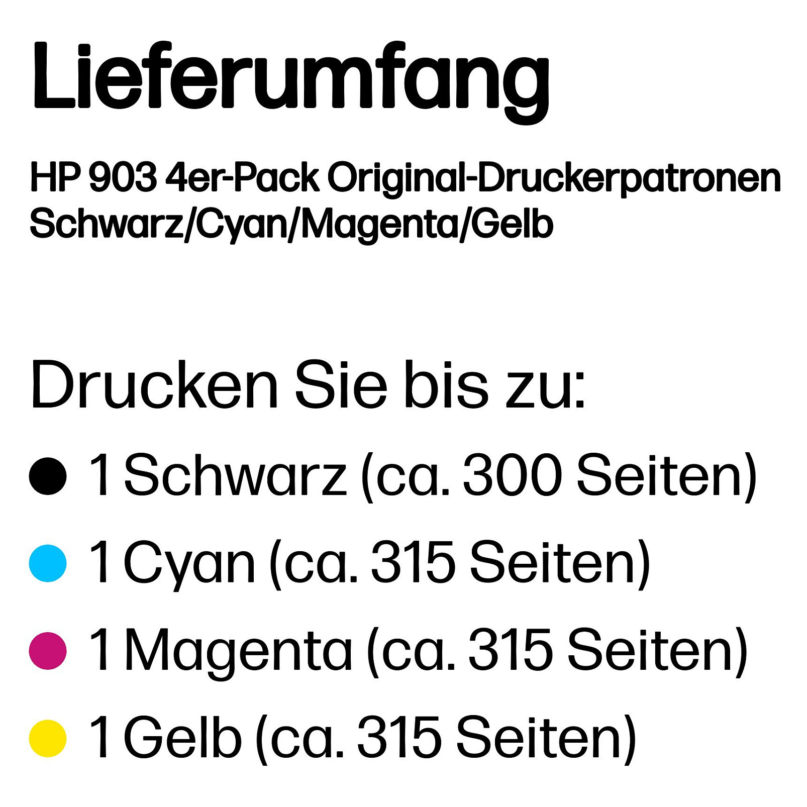Packungsinhalt: 4 Druckerpatronen: 1 Schwarz Standard und je 1 Cyan, Magenta, Gelb Standard.