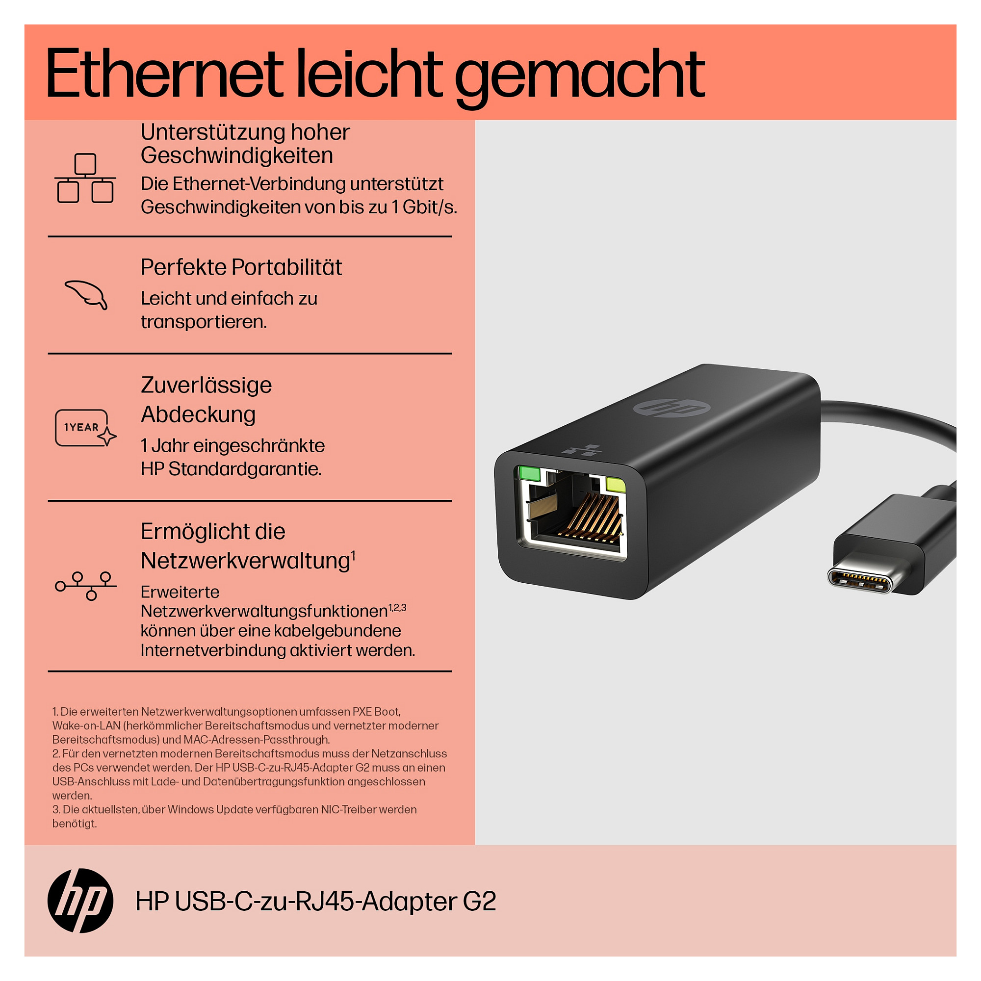 Packungsinhalt: HP USB-C to RJ45 Adapter G2; Documentation