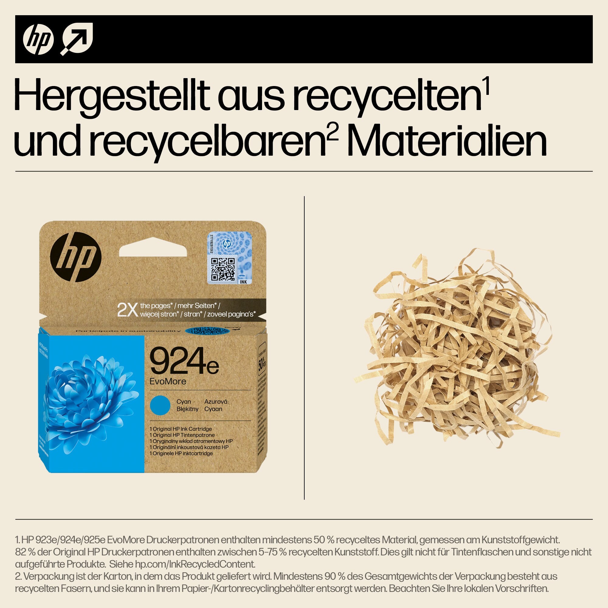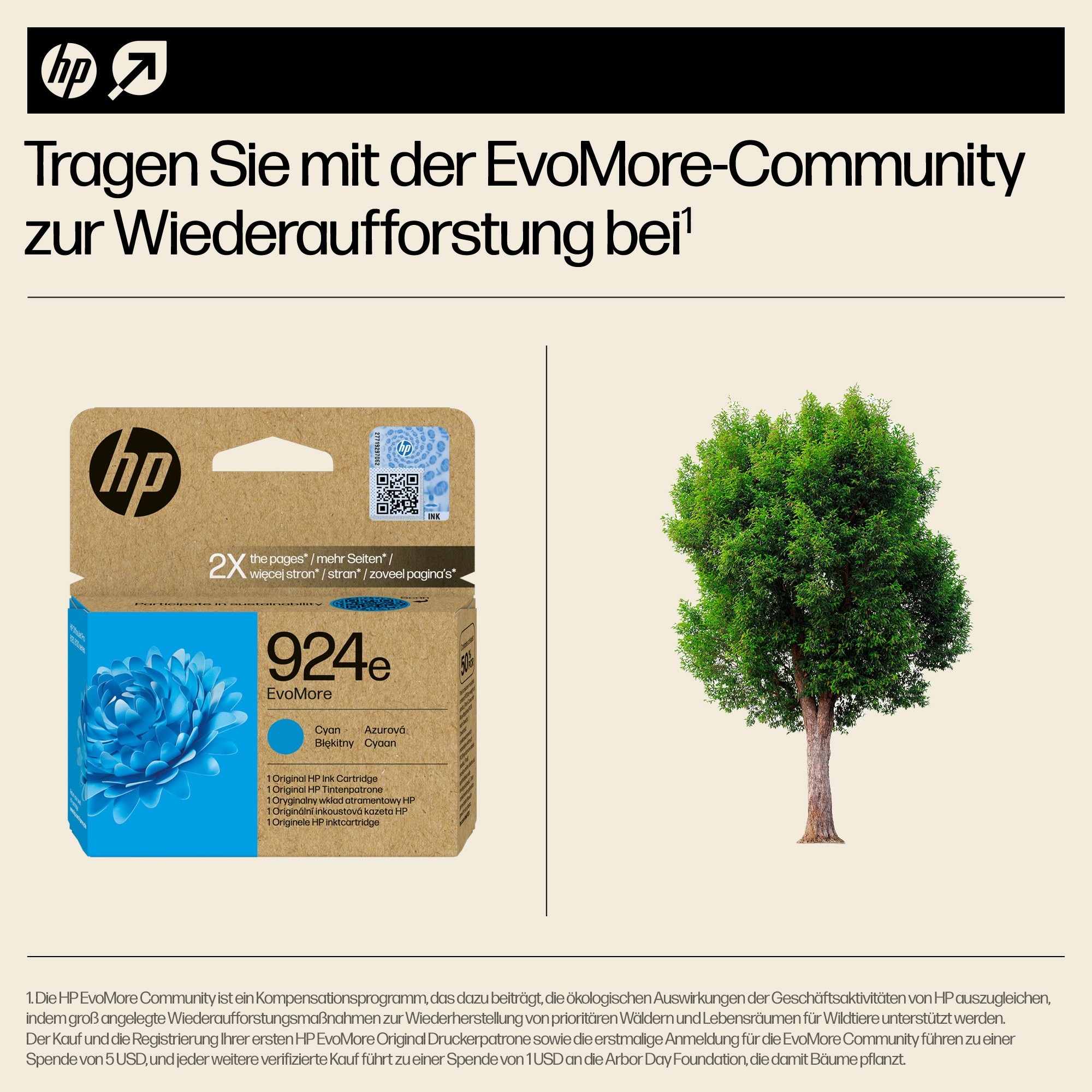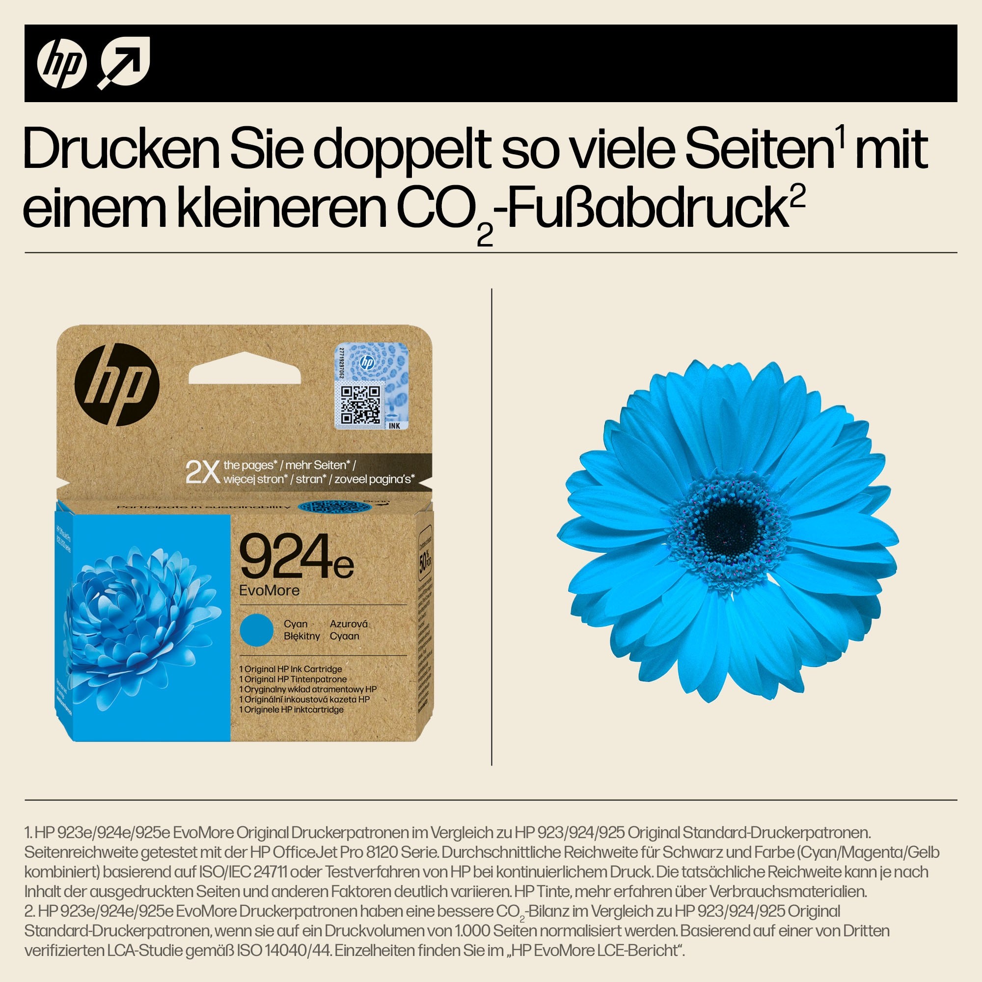 HP EvoMore Original Druckerpatronen sind so konzipiert, dass sie doppelt so viele Seiten drucken wie Standard-Druckerpatronen,[3] eine geringere CO2-Bilanz haben[2], sich leicht recyceln lassen[4] und die legendäre Leistung und Qualität von HP mit zusätzlichen Nachhaltigkeitsfunktionen kombinieren.