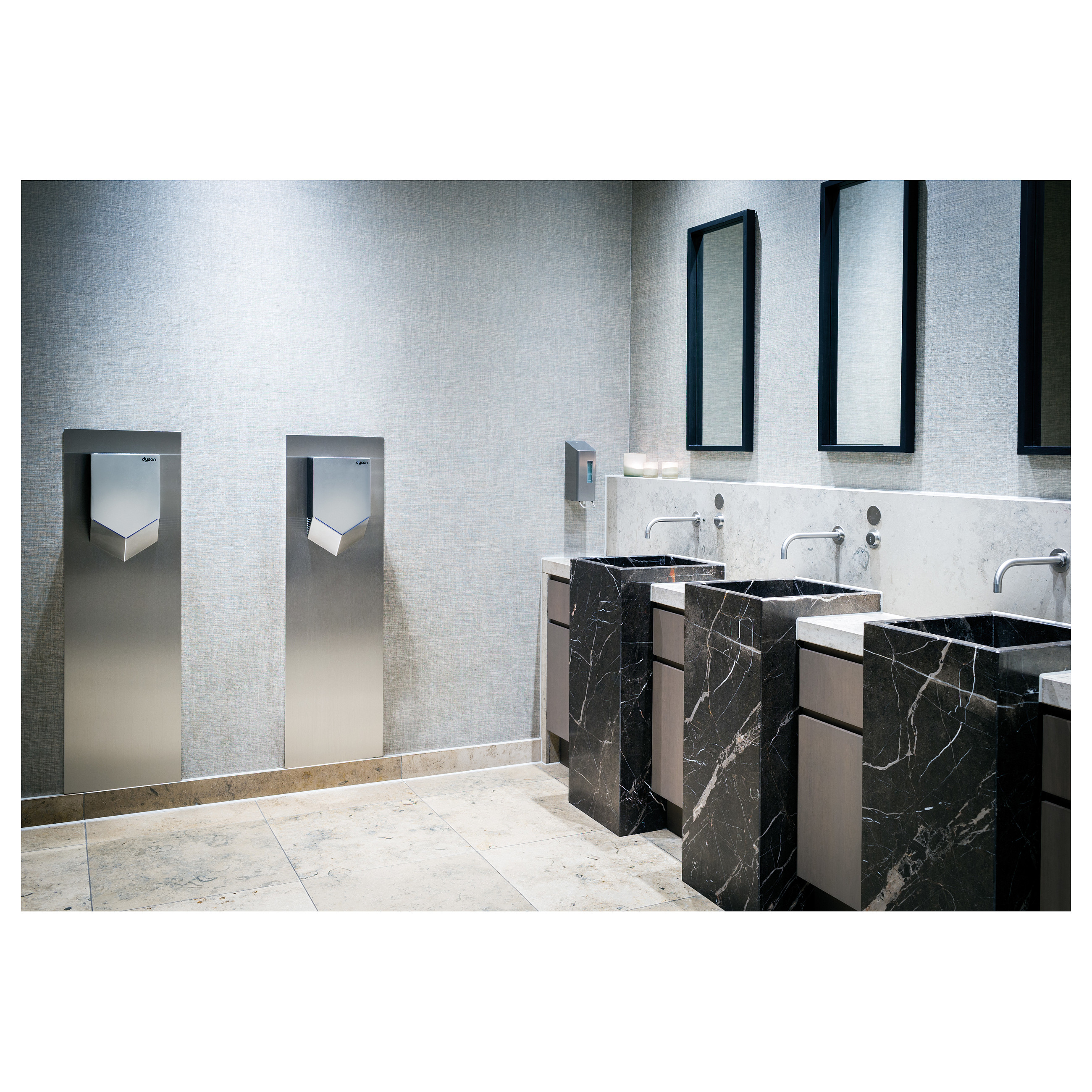 Dank seiner leicht montierbaren Rückwandplatte kann der Dyson Airblade V Händetrockner einfach montiert und gewartet werden.