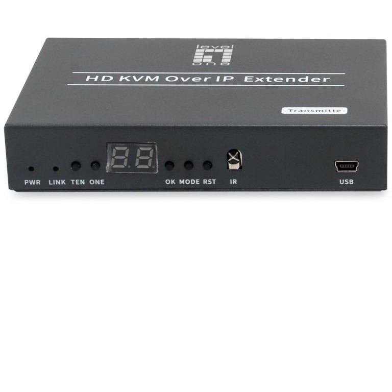 LevelOne HVE-6701T. Typ: AV-Sender, Maximale Auflösung: 1920 x 1080 Pixel, unterstütze Kabeltypen: Cat5e, Cat6, Cat7. Übertragungstechnik: Kabelgebunden, HDMI-Version: 1.3b, USB-Stecker: Mini-USB. Energiequelle: Gleichstrom, Arbeitsspannung: 12 V, Stromverbrauch (max.): 3,3 W. Breite: 119 mm, Tiefe: 81,7 mm, Höhe: 23 mm. Menge pro Packung: 1 Stück(e), Verpackungsart: Box