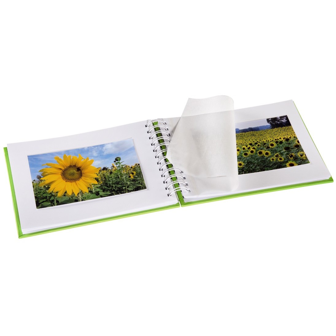 - Spiralverschluss in der Albeninnenseite vermeidet Herausfallen der Albumblätter und verhindert Verletzungen