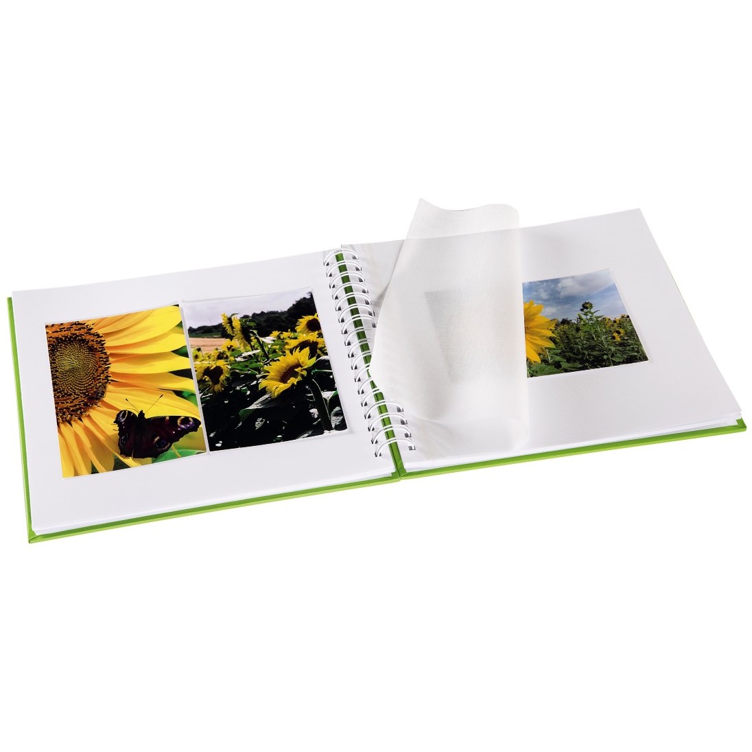 - Spiralverschluss in der Albeninnenseite vermeidet Herausfallen der Albumblätter und verhindert Verletzungen