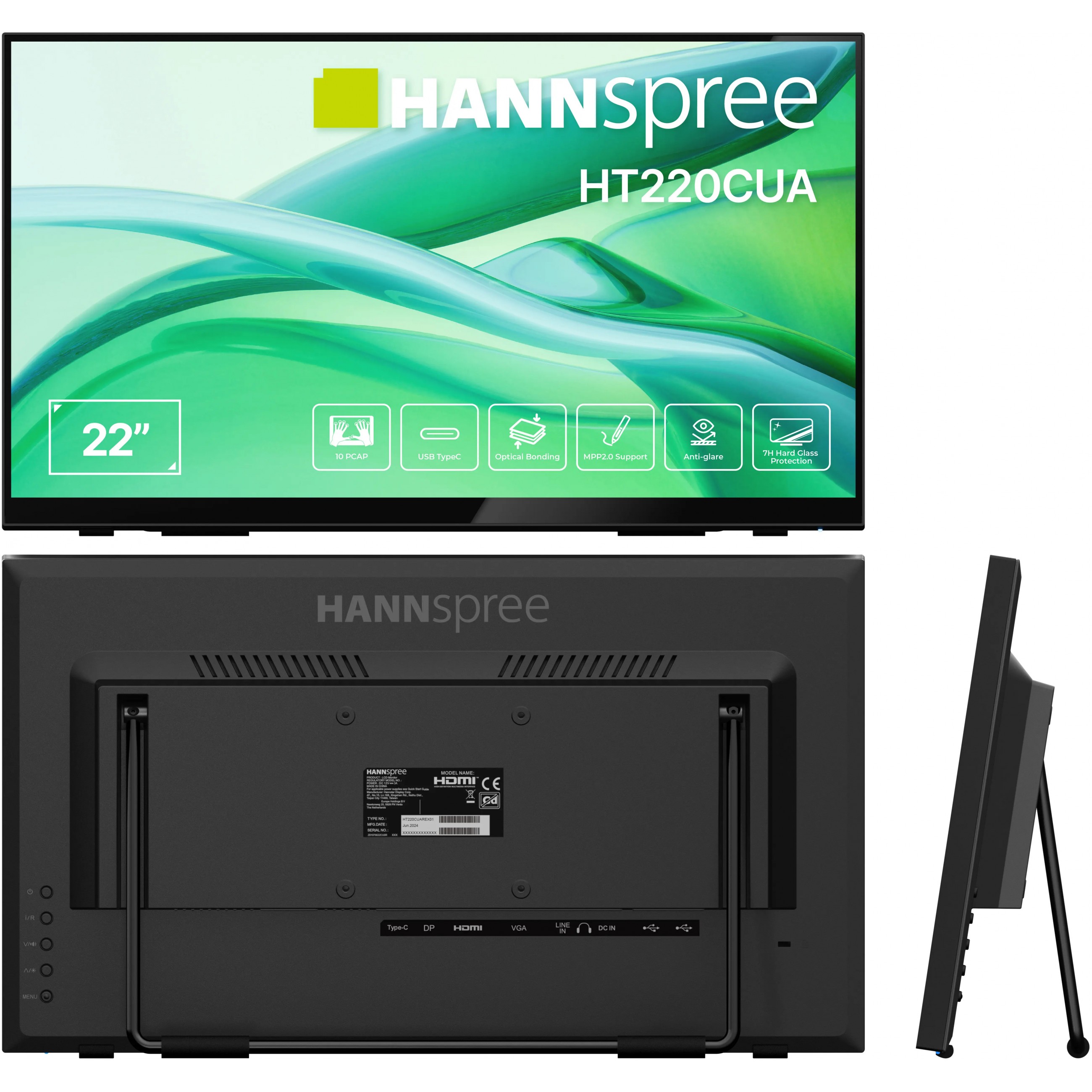 Hannspree HT220CUA. Bildschirmdiagonale: 54,5 cm (21.4"), Display-Auflösung: 1920 x 1080 Pixel, HD-Typ: Full HD, Bildschirmtechnologie: LED, Reaktionszeit: 6 ms, Natives Seitenverhältnis: 16:9, Bildwinkel, horizontal: 178°, Bildwinkel, vertikal: 178°. Eingebaute Lautsprecher. Integrierter USB-Hub, USB-Hub-Version: 3.2 Gen 1 (3.1 Gen 1). VESA-Halterung. Produktfarbe: Schwarz