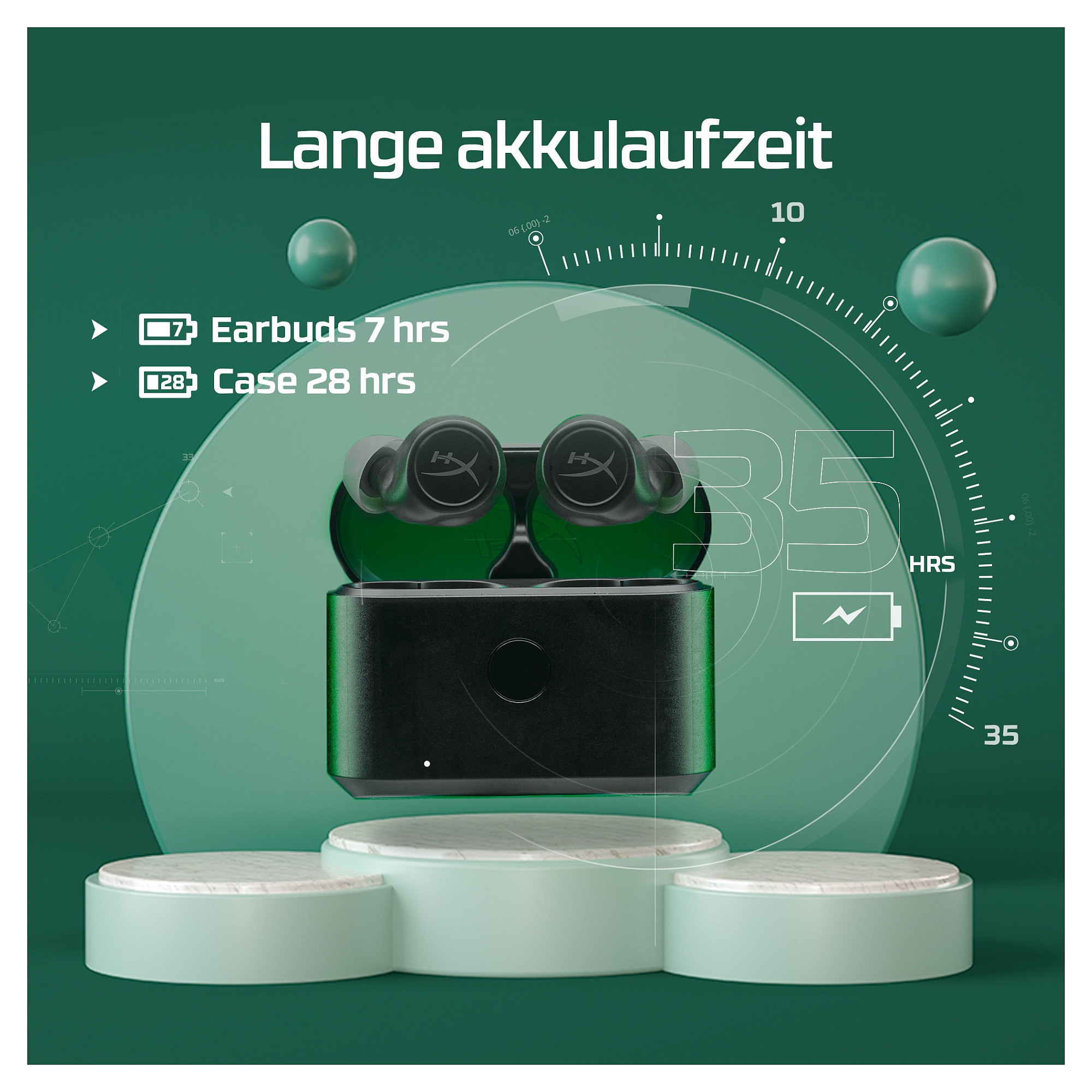 Bewege dich stattdessen durch unsere umtriebige Welt, ohne sie in deine zu lassen. Die HyperX Cirro Buds Pro True Wireless-Ohrhörer mit Hybrid-ANC sorgen dafür, dass du dein Lieblings-Handyspiel, dein Hörbuch oder deine Musik auch ohne Alltagsgeräusche genießen kannst. Wenn du lieber ein Ohr für die nächste Haltestelle offen halten oder wachsam bleiben willst, entscheide dich für den Umgebungsgeräuschmodus, um einen gewissen Hintergrundgeräuschpegel durchzulassen. Mit einer Bluetooth 5.2-Verbindung profitierst du von einer problemlosen Verbindung mit geringer Latenz für deine Handyspiele. Die Cirro Buds Pro sind IPX4-zertifiziert und sind somit robust genug, sodass du dich gegen die Konkurrenz durchsetzen und ein Workout durchziehen kannst. Vollständig geladen halten sie bis zu 35 Stunden lang[1] und können in nur 40 Minuten vollständig geladen werden. Bei diesen vielseitigen Wireless-Ohrhörern steht auch der Tragekomfort im Vordergrund. Im Lieferumfang sind 3 Paar Ohrstöpsel enthalten, damit du genau die für dich geeignete Passform findest.