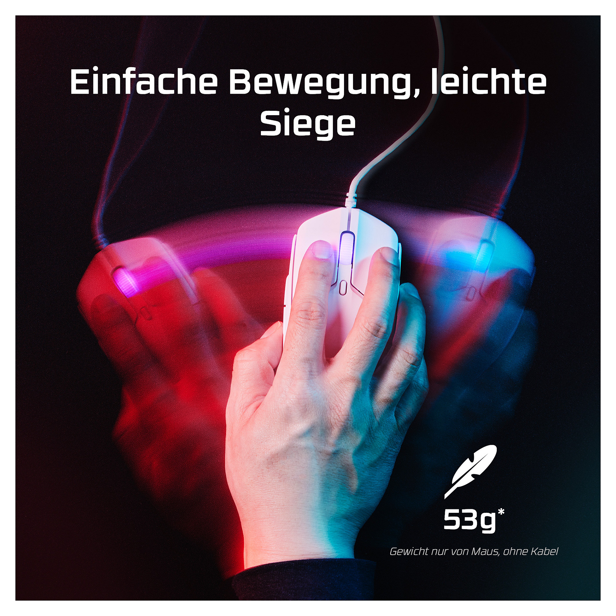 Die HyperX Pulsefire Haste 2 wurde speziell für Gamer entwickelt, die jede Millisekunde optimal nutzen wollen. Unsere Designer haben die ursprüngliche Pulsefire Haste mit einer Schale optimiert, die rundum robust ist und dennoch nur 53 g3 wiegt. Außerdem hat unser Team eine Reihe von leistungsstarken HyperX Komponenten entwickelt, darunter den präzisen HyperX 26K-Sensor mit 26.000 dpi nativer Auflösung und einer Tracking-Geschwindigkeit von bis zu 650 IPS. Die Pulsefire Haste 2 ist mit speziellen HyperX Switches ausgestattet, die einen überzeugenden Klick nach dem anderen mit haptischem und akustischem Feedback liefern und auf eine Lebensdauer von bis zu 100 Millionen Klicks ausgelegt sind. Sichere dir mit der Abfragerate der Pulsefire Haste 2 von 8000 Hz2 mehr Reaktionsfähigkeit und Genauigkeit. Dank des mitgelieferten Grip-Tapes, eines superflexiblen Paracord-Kabels und hochwertiger reibungsarmer Rollen erhältst du eine erstklassige Kontrolle über deine Maus. Optimiere mit der HyperX NGENUITY Software jede Mausbewegung, erstelle Makros für die 6 programmierbaren Tasten, passe deine DPI-Einstellungen an und individualisiere die RGB-Beleuchtung.