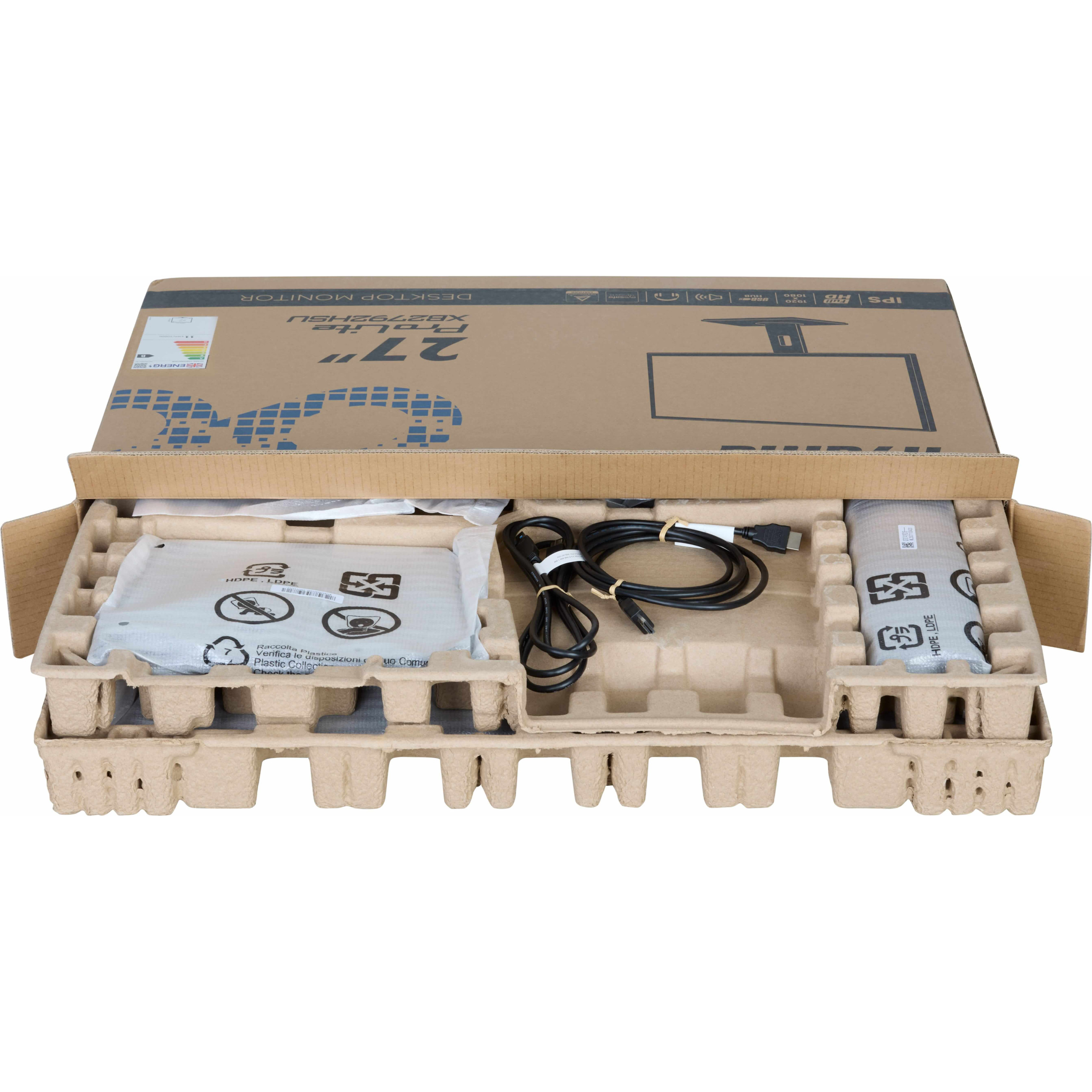 Der ProLite XB2792QSU ist ein 27"-QHD-Monitor, der sich ideal für alle eignet, die mehr Bildschirmfläche, präzise Bildqualität und einen nachhaltigen Monitor wünschen. Er wird ohne Kunststoff verpackt und besteht zu 85 % aus recycelten Materialien. Er erfüllt die TCO-Zertifizierung und die EPEAT®-Silber-Standards. Mit einer Auflösung von 2560 x 1440 bietet er 77 % mehr Bildschirmfläche als Full-HD-Monitore, sodass Sie in mehreren Fenstern arbeiten und mehr Details sehen können, ohne ständig scrollen zu müssen. Sein IPS-Panel liefert scharfe Details, lebendige Farben und große Betrachtungswinkel, während das rahmenlose Design einen eleganten, ablenkungsfreien Arbeitsbereich schafft. Um Ihre Augengesundheit zu schützen, entspricht er den Zertifizierungen Eye Safe und Eye Comfort, und der um 150 mm höhenverstellbare ergonomische Standfuß sorgt für ganztägigen Komfort.