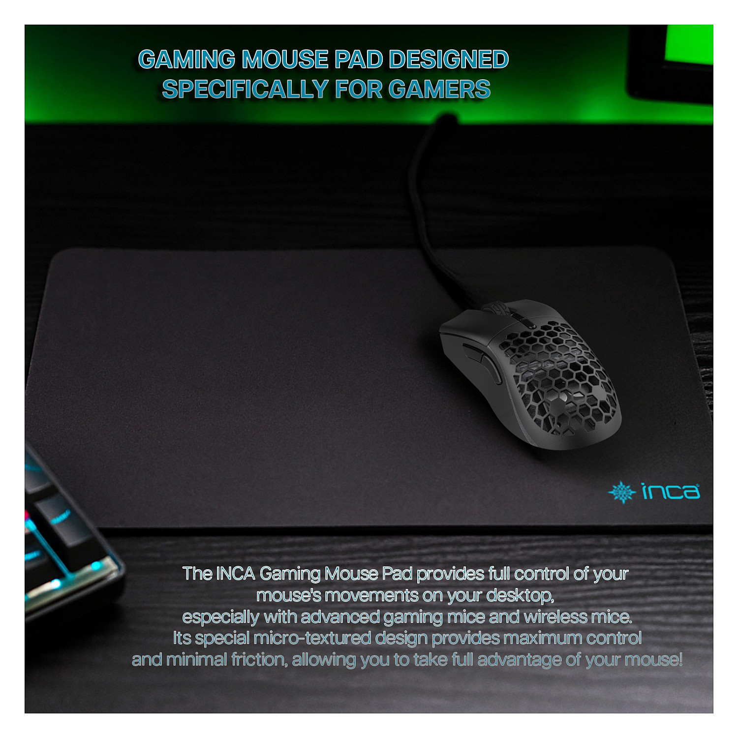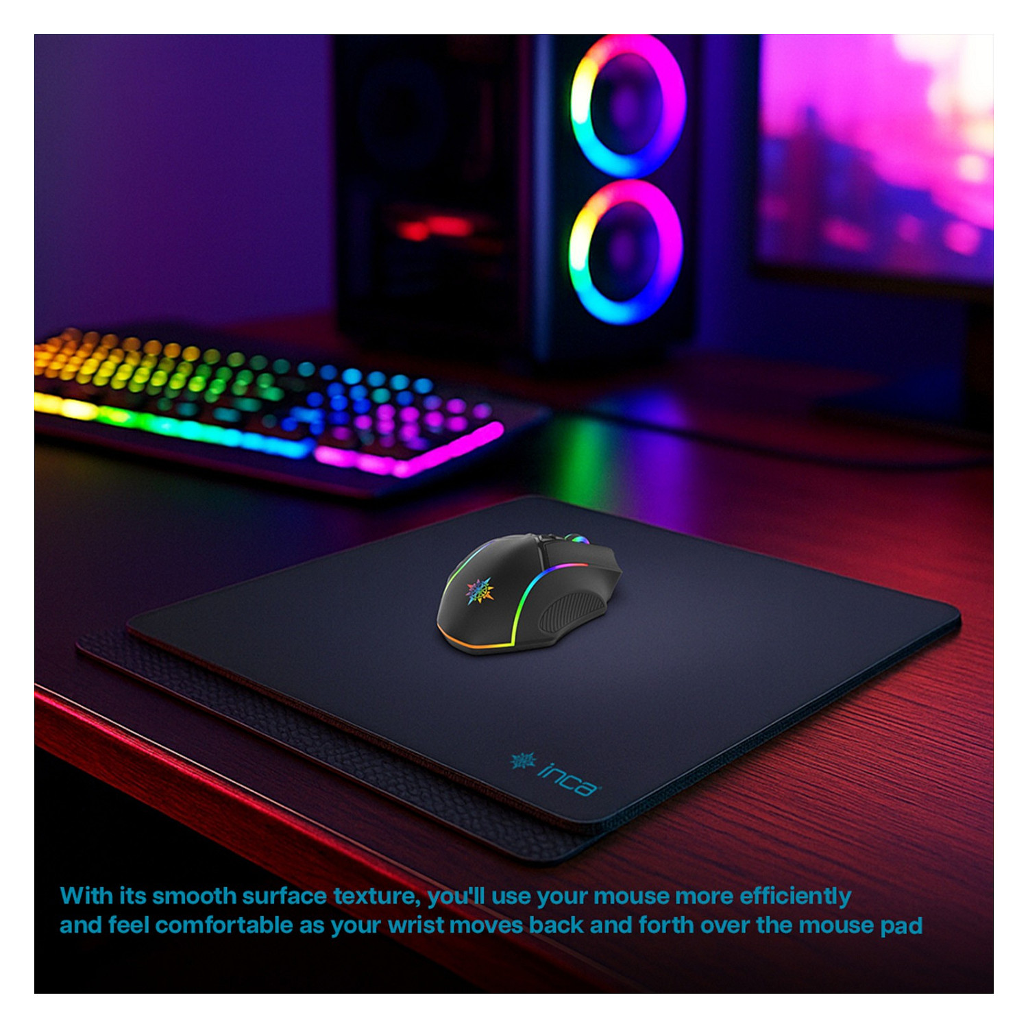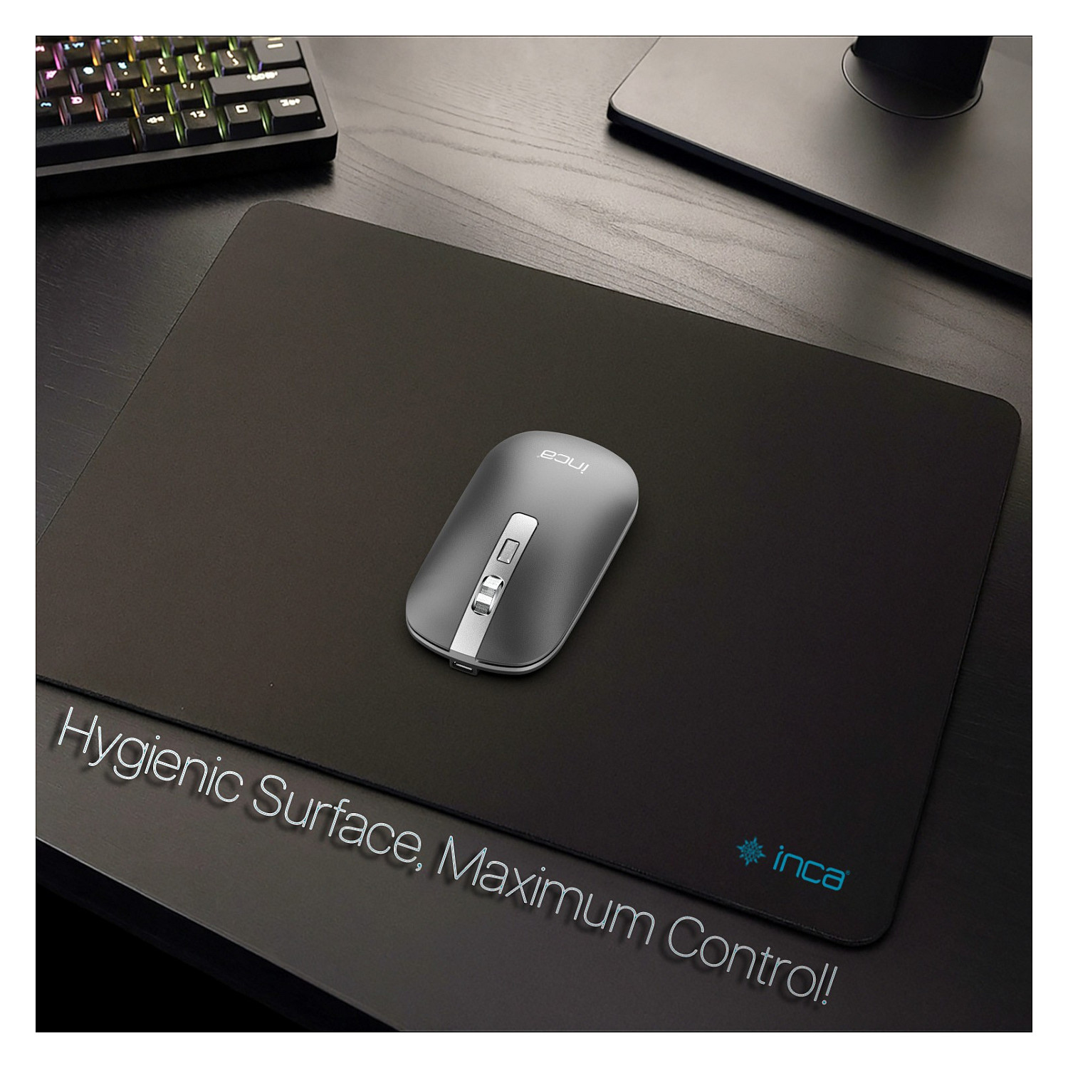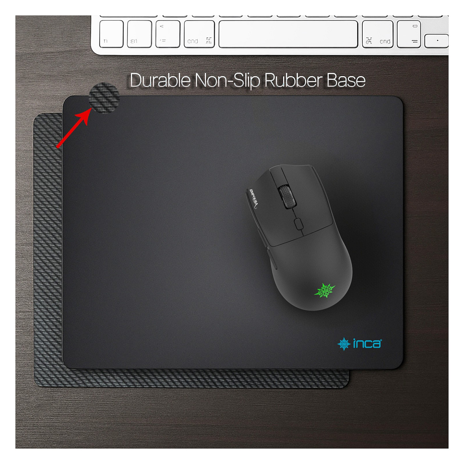 Inca IMP-020. Breite: 350 mm, Tiefe: 270 mm. Produktfarbe: Schwarz, Oberflächenfärbung: Einfarbig, Anti-Rutsch-Basis, Gaming-Mauspad