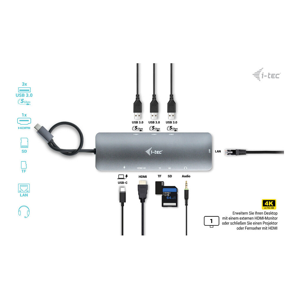 - 3x USB 3.2 Gen1 (5 Gbps), 1x SD und 1x microSD ermöglichen den einfachen Anschluss Ihrer USB-Geräte und Peripheriegeräte.