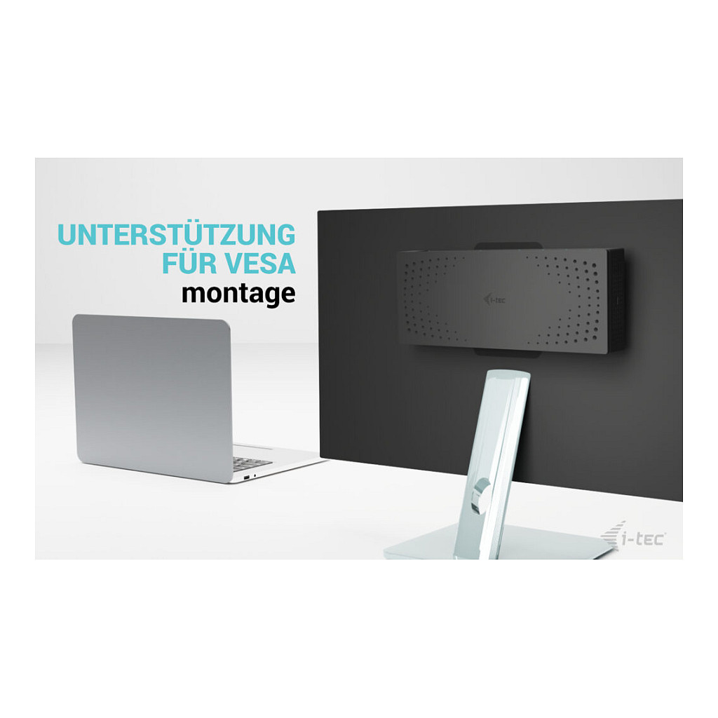 Die Dockingstation kann mit der i-tec VESA-Halterung hinter dem Monitor installiert werden (sofern dieser eine Standard-VESA-Halterung unterstützt).