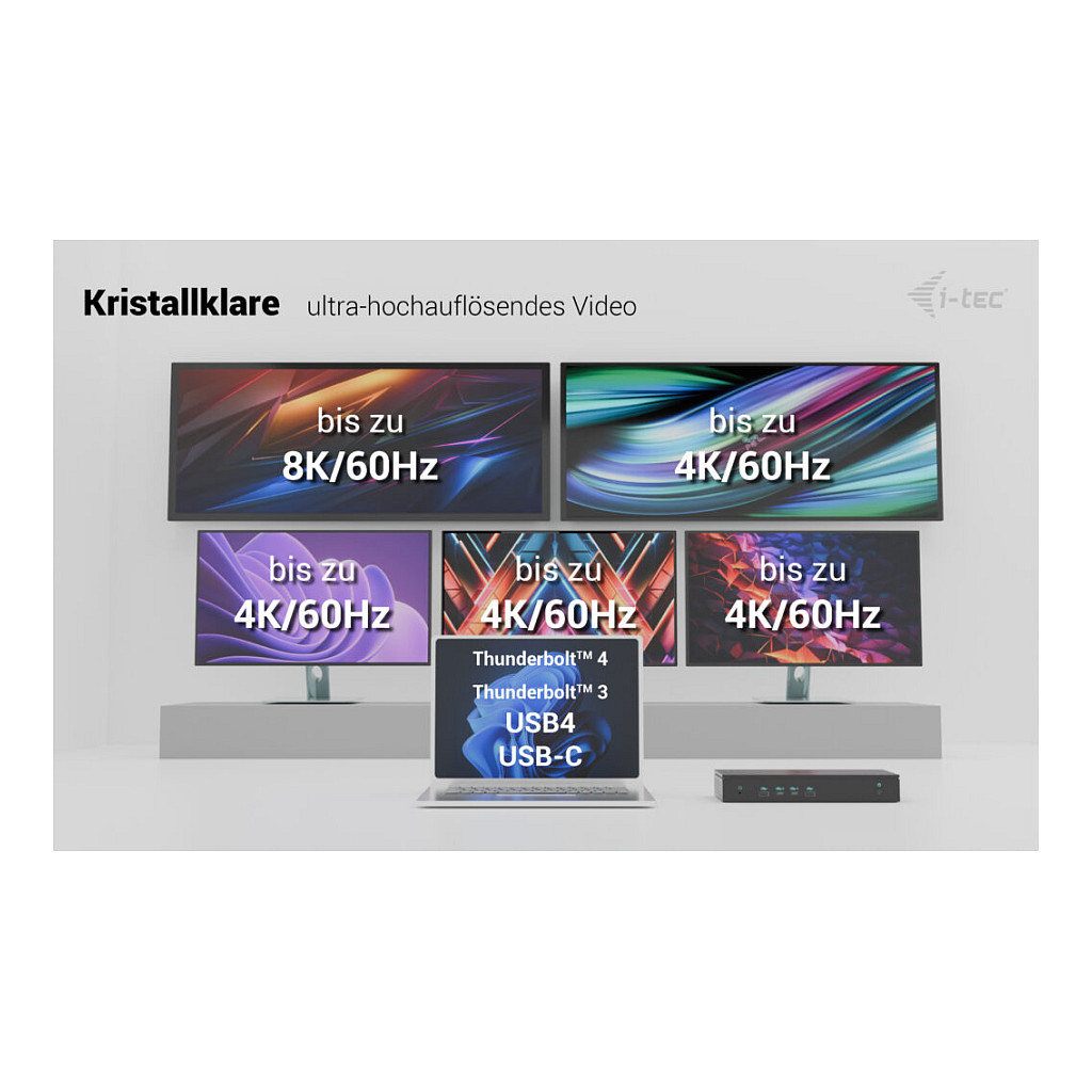 - Unterstützung für bis zu 5 externe Monitore* mit einer Auflösung von 1x 8k/60Hz oder 5x 4K/60Hz
